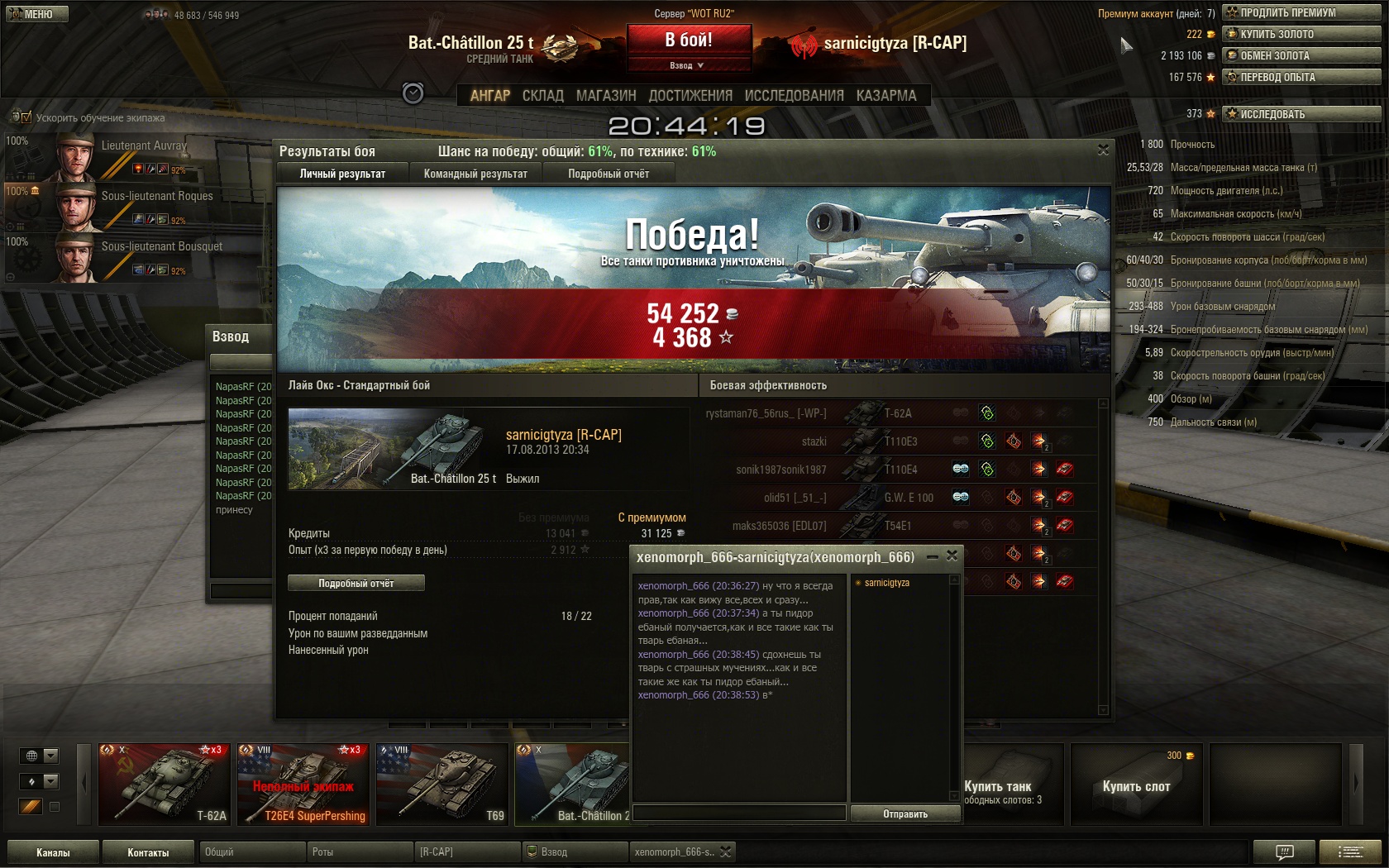 Катать 50 100 и Т69 взводом просто нереально охуенно. Можно нагибать неразгибая 90% игроков противника, были бы команды, конечно, в меру адекватные ohwhy И охуенная батруха от Напаса :45: |