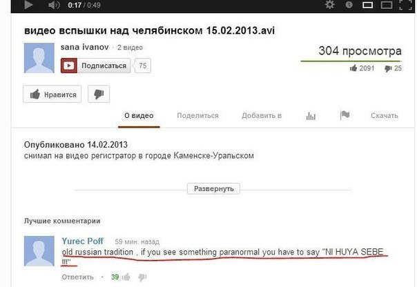 Re: Челябинский бугурт. Или как у космоса над Челябинском бомбануло (видео)