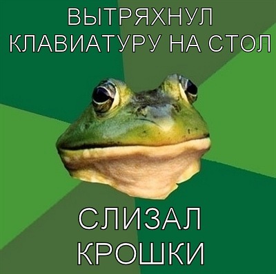 Вложение 19655 Здарова ГЛАД! Сегодня подобрал огромный пак картинок про эту ебучую жабу, так что смотрим и ржем! ![]() |
