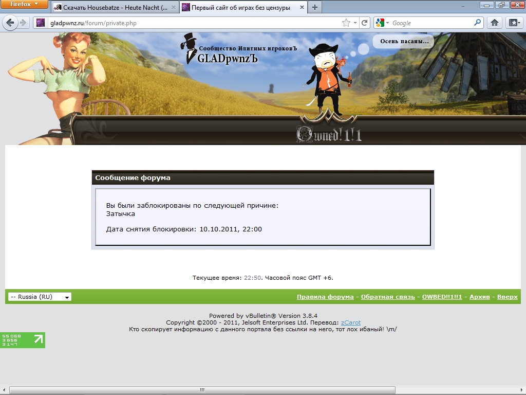 ты избранный,тебя форум сам выбрал для бана =)
