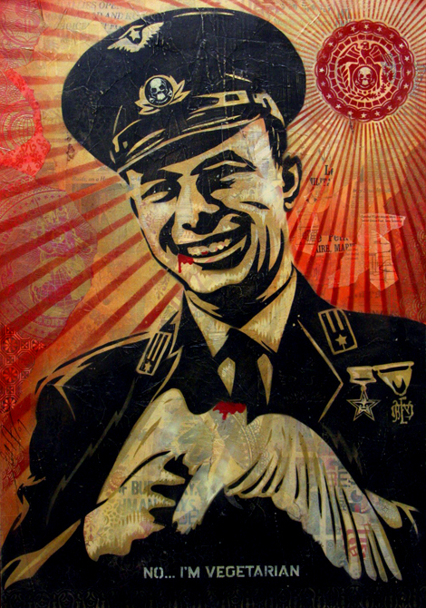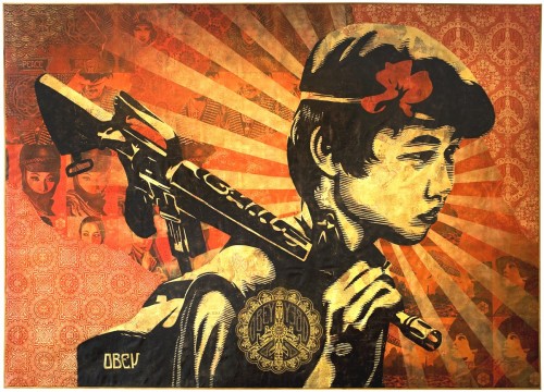 Obey. Never trust your own eyes, believe what you are told! Френк Шепард Фейри Вложение 30923 *Тема содержит много текста и картинок* Фейри родился и вырос в семье врача. В середине 80- х. скейт-культура начала набирать обороты, подогреваемая панк-роком, скейтерством и подростками, которые во всем этом участвовали. Среди них был и Шепард Фейри. Для некоторых молодых людей это было просто мимолетное увлечение, которое длилось год-другой, но для Френка это превратилось в целую культуру. Из мира становления андерграундного скейтбординга и панк-рока, он влился в мир контр-культурного пропагандистского стрит-арта... Ныне Фейри признанный талант, связанный как с андеграундом, так и с массовой культурой. Его произведения хранятся в Музее современного искусства и Смитсоновском институте. Живёт художник в Лос-Анджелесе, женат, имеет двух дочерей. Фейри наиболее известен благодаря двум работам в стиле поп-арт, обыгрывающим раскрученные медиа-образы. Первая, созданная в 1986 и известная в двух вариантах, представляла собой портрет французского борца Андре «Великана» Руссимоффа. Под борцом красовалась фраза «GIANT HAS A POSSE» (У Великана есть толпа), во втором варианте сокращённая до слова «OBEY» (Повинуйся), связанного с фильмом «Они живут среди нас» и ставшего творческим псевдонимом художника. Изображение распространялось в виде наклеек и плакатов. Вложение 30926 Самая же знаменитая картина Фейри — работа «Hope» (Надежда), которая посвящена президенту США Бараку Обаме. Фейри выполнил её в 2008, во время предвыборной кампании Обамы. Автор некоторое время колебался между несколькими вариантами подписи, но, в конце концов, остановился на «Надежде». Плакат не только прославил своего создателя, но и повлиял на настроения избирателей. Мотивы «Надежды» использовались при создании политических плакатов и после выборов. Вложение 30925 Кроме этих двух картин, Фейри принадлежит ряд художественных плакатов, посвящённых социализму, религии, музыке и экологии. Фейри занимался графическим дизайном по заказу многих корпораций, включая PepsiCo и Adidas. Он сотрудничал и с музыкальными коллективами, рисуя обложки альбомов групп Sepultura, Black Eyed Peas и Smashing Pumpkins. В интервью Фейри подчёркивает, что берётся рекламировать только продукцию тех компаний, которые не вызывают у него морального отторжения. Использование известных образов в картинах не могло не привести к спорам из-за авторского права. Так, оно стало одной из причин смены подписи к портрету Андре-Великана. Но наиболее сильный скандал был вызван тяжбой Фейри с Associated Press из-за использования фотографии, принадлежащей агентству, в «Надежде». (Кстати, чтобы заладить этот конфликт художнику пришлось отвалить лавэ…) Помимо этого, художник арестовывался за рисование граффити в общественных местах. Так же следует отметить, что: • Журнал ART+Auction назвал Фейри самым влиятельным художником 2008 года. • Фейри фигурировал в игре Marc Ecko’s Getting Up: Contents Under Pressure в качестве легенды граффити. • Шепард снялся в фильму «Выход через сувенирную лавку», повествующую о Бэнкси (см. Личность в искусстве. Ч.1.) • Косвенно знаком с Banksy и Mr. Brain Wash. В свои 30 с лишним Шепард Фейри живет заебись как, что находит отражение в его собственных стрит-арт кампаниях, выставках и перформансах по всему миру. Его почерк – темные полутона ироничного поп-арта, в сочетании с кричащими заголовками. Невозмож
