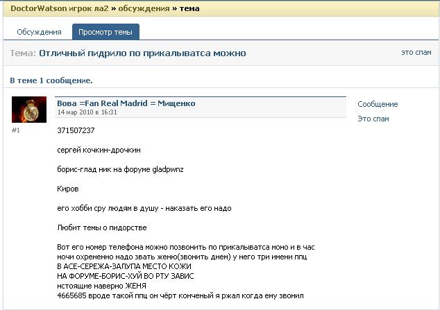 До меня дошло почему Хуятсон выбрал именно меня в качестве куклы вуду для своих извратных фантазий. Это если честно элементарно если проследить Топ 5 по форуму то станет ясно (скрин ) что Хуятсон ненавидит меня за то что в начале месяца меня нет и он набивает себе рейтинг, но вот я опят есть и хуяк ололо на 2 месте, если честно уважаемый Хуятсон я в рот ебал рейтинг и количество постов, так же награды и прочие почести меня неинтересуют, можеш говном изойтись набивая свои 2к постов =)