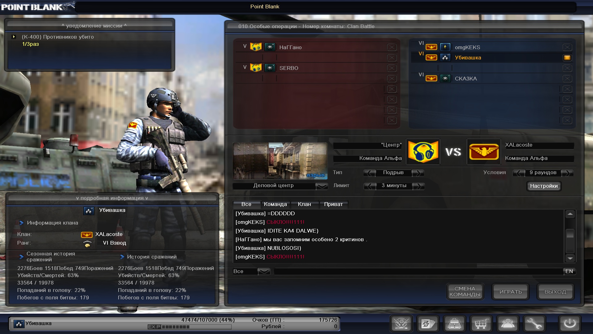 Вот и в PointBlank'e ежи проявляют ту же сущность, вроде и звание крутое, хуй докачаешься (это надо бабу нахуй послать, работу нахуй, гулянки и пьянки нахуй и сидеть вдрачивать с попеременным онанизмом по вечерам) тем самым опытные и прошаренные игроки и статистика в рот не въебенная, убивать как в следствие чего должно с одного лишь взгляда, в общем по сути опасаться и уважать их следует, но ебись оно все в рот, у нас в России, что лесные ежи, что игровые пиздежь полный, обусловлен одним словом: нипаняяятно... Вот вам пример на скрине, смотрите стату и результат игры, при этом мы не "отцы ПБ" , скорее просто любители, которых те же NcSky в попу трахали хедами сразу в нулину, а тут чел, круче всех НсКай по статам, а нубит, как старушка в компьютерном клубе... |