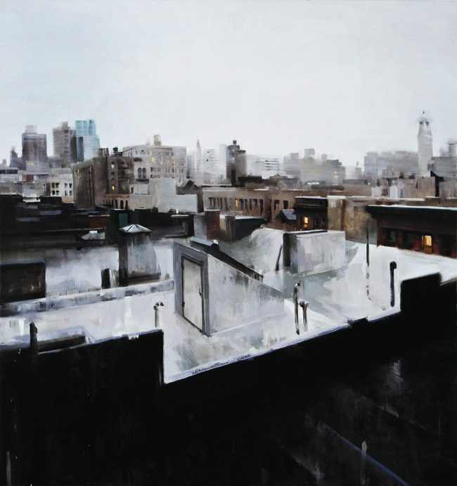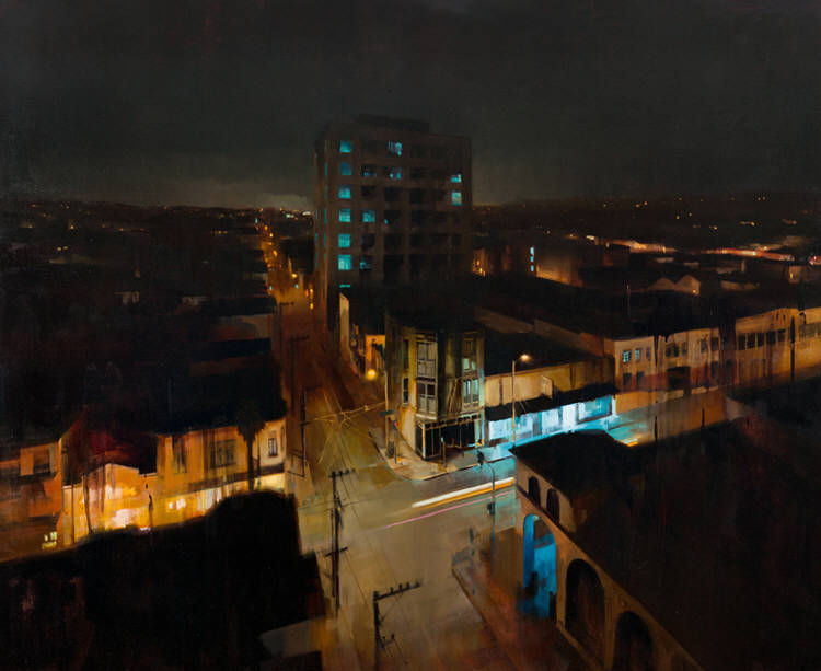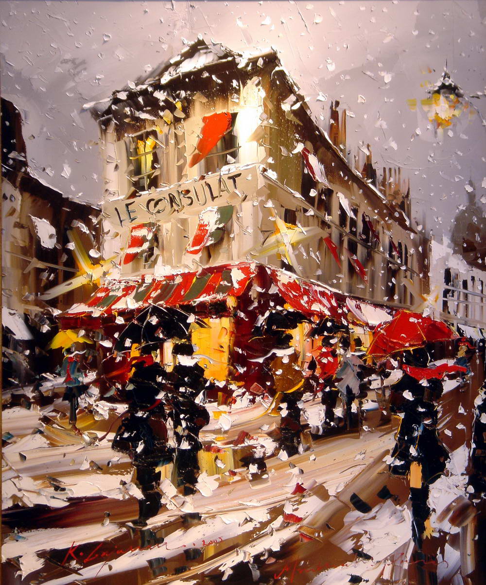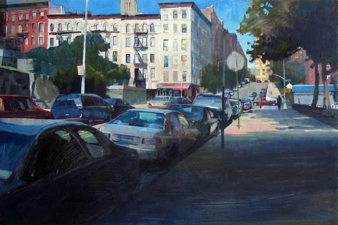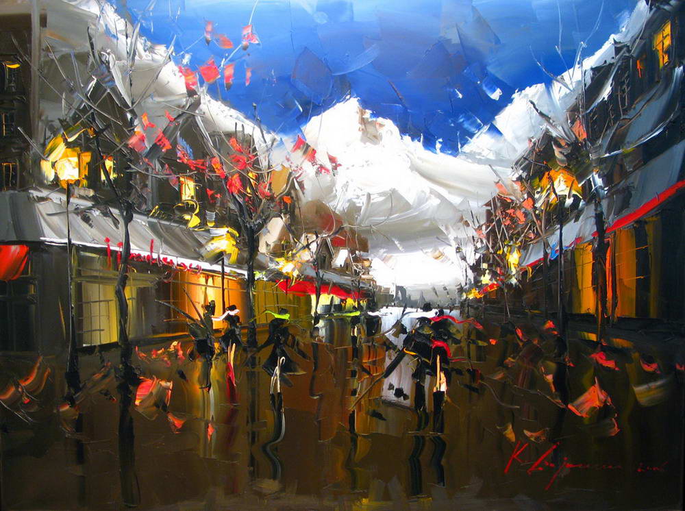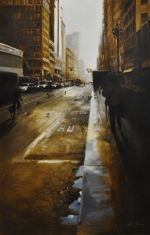 Если предыдущие художники представляют нам город в ярких позитивных красках, то тут сплошной реализм. Город - какой он есть... Шедеврально передана атмосфера. Заметьте, улицы пусты, что навевает еще более мрачные ощущения.