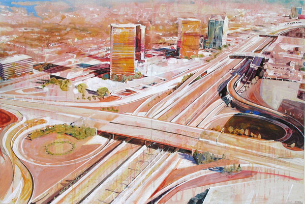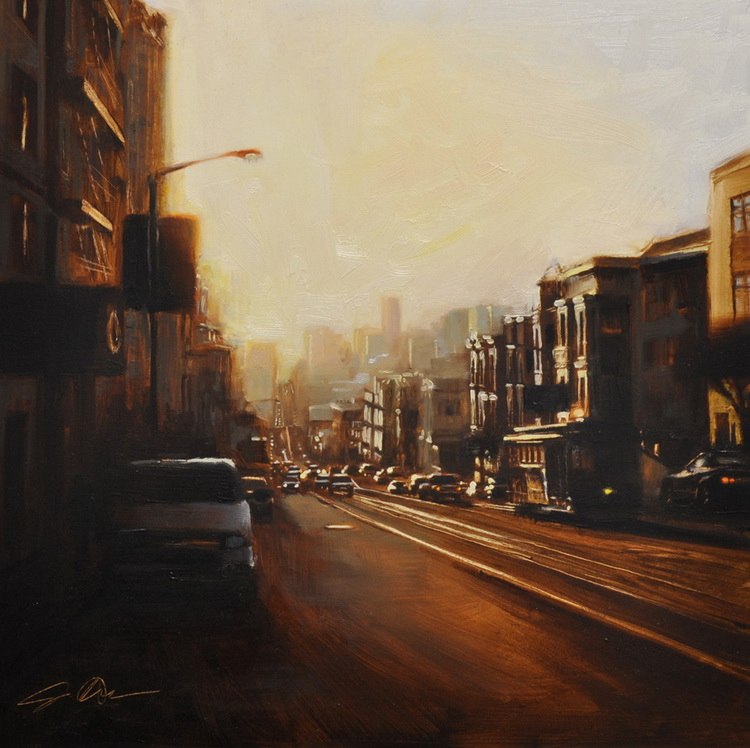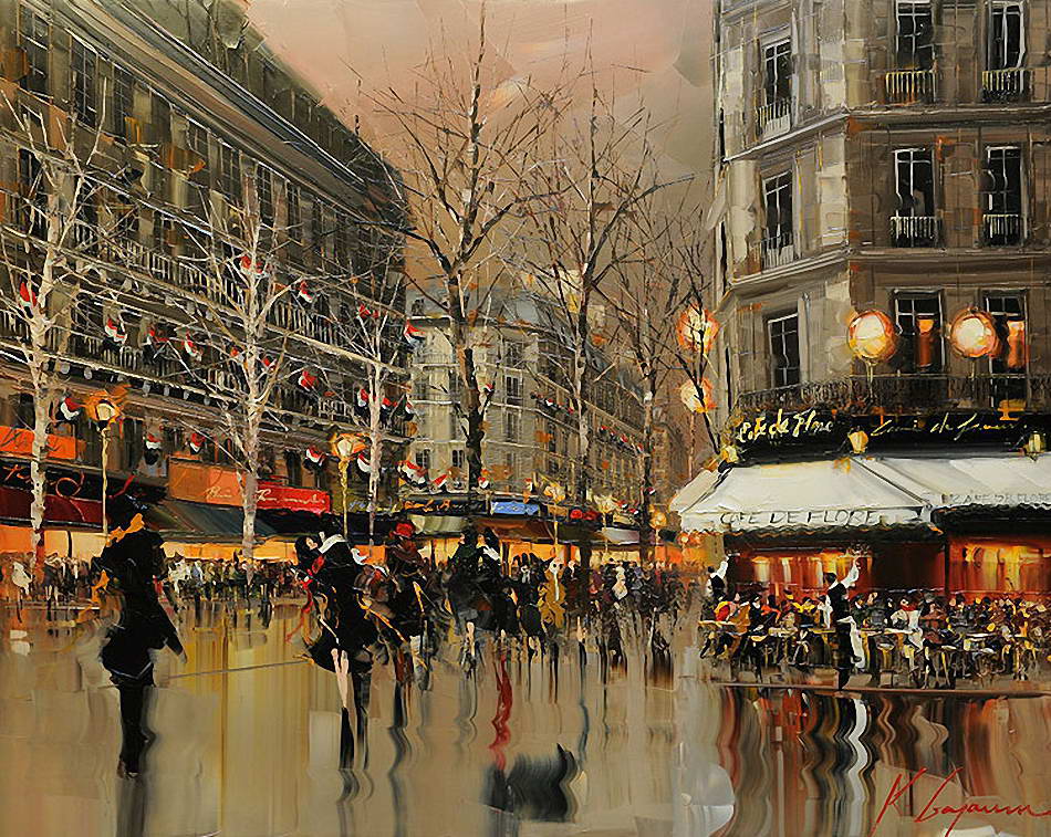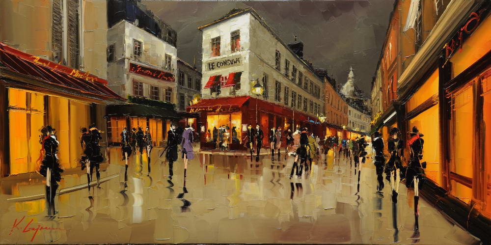 В основе композиций многих его работ лежит большое скопление людей в городе. Так же присутствуют просто масштабные пейзажы города. Достаточно приятно глазу, сильно передает энергетику города.