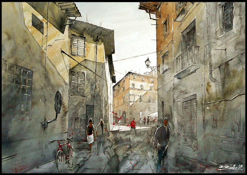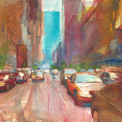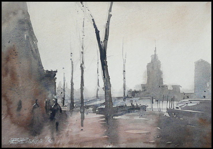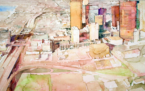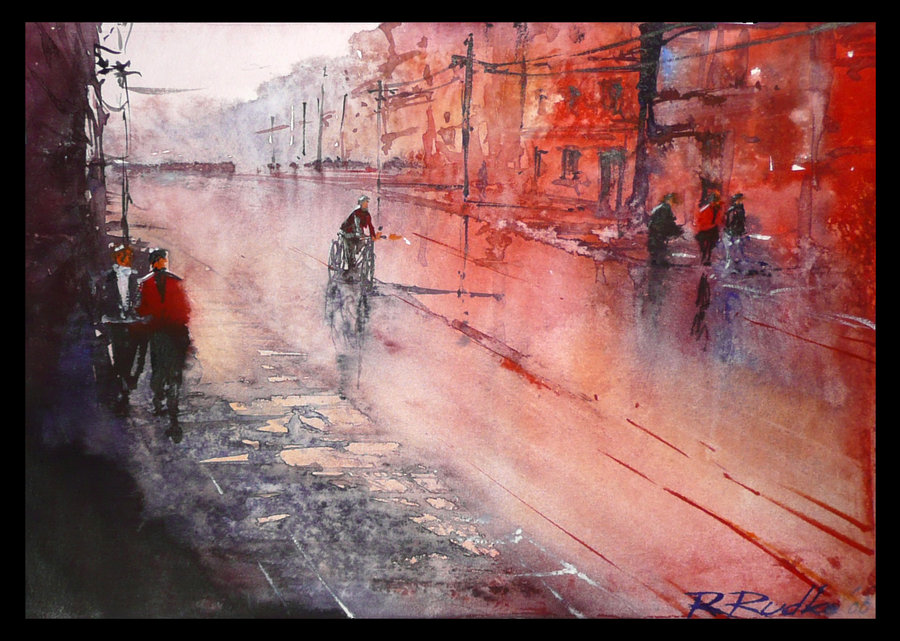 Опять же город. Очень интересная техника акварелькой.