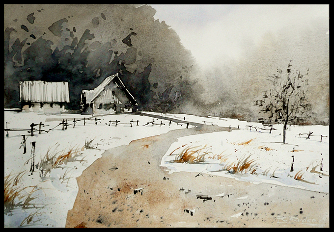 Тоже очень своеобразная и интересная подача акварелью.