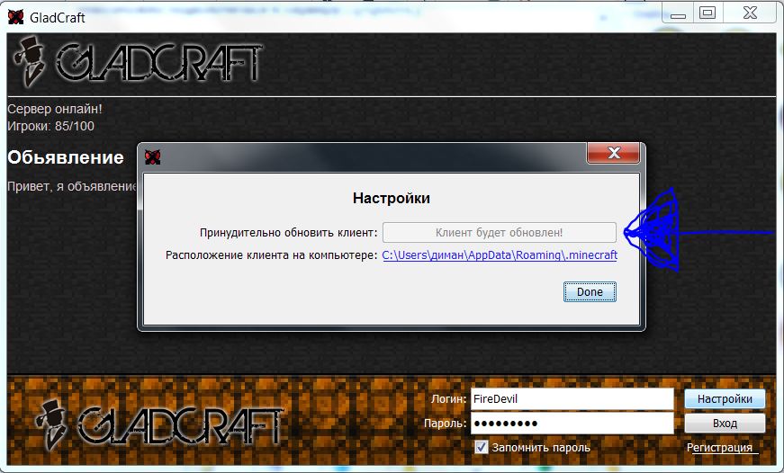 пишет: невозможно подключится к серверу, игра не загружена! Папка .gladcraft пуста! перепробовал много вариантов установки, не помогло... как быть?