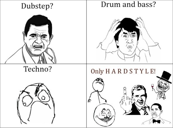 Салют всем ценителям музыки. Много видео без спойлера По моему каждый ньюс создал на гладах подборочку, исходя из своих предпочтений, ну и я решил с вам поделится не очень распространенными жанром музыки как hardstyle. Прошу отнестись адекватно:84: Я уже писал про такие жанры как gabber, hardcore, speedcore, darkcore, и для незнающего они почти не отличаются, но давайте сначала ознакомимся с этим жанром плавно, то есть в тестовом виде: Hardstyle (в переводе с англ. — «жёсткий стиль») возник в конце 90, когда в России, почти не знали даже что такое техно, а смотрели бумер и бригаду:47:, кстати от техно он и произошел. В дальнейшем утяжелённое техно смешивается с басовой и синтезаторной линией hard-trance, вследствие чего получался более жёсткий звук, который звучал уже почти как хардкор-техно. Пока этот стиль развивался и крепчал, но неоднократно приобретал как темное, тяжелое звучание, так и более клубное, спокойное. Приближаясь по мере развития в своем звучании к dancecore, hard trance, hardcore к 2007 году хардстайл стал абсолютно самостоятельным стилем, и считать его подстилем кого либо из уже существовавших жанров и стилей, будет неверно. В наши дни hardstyle занимает не последнее место в музыкальной индустрии: целые радиостанции и телеканалы посвящены этому стилю а по всему свету проводятся эффектные пати, котоыре собирают тысячи тусовщиков. На них и делают AfterMovie - клипы сделанные на пати, с ритимчной обработкой. Ловите кучу сисек, эффектов, объебосов, и потрясной музыки, и смотрите как нужно отрыватся:86:: (если пишет "An error occurred, please try again later". то просто обновите страницу) http://www.youtube.com/watch?v=jQV4c...feature=colike http://www.youtube.com/watch?v=8qeTE...feature=colike http://www.youtube.com/watch?v=KOdE3...feature=colike http://www.youtube.com/watch?v=E_rng...feature=colike http://www.youtube.com/watch?v=qPotR...feature=colike http://www.youtube.com/watch?v=IG9EY...feature=colike http://www.youtube.com/watch?v=4rIMe...feature=colike http://www.youtube.com/watch?v=wI_A7...feature=colike http://www.youtube.com/watch?v=lKCTC...feature=colike http://www.youtube.com/watch?v=lc-h6...feature=colike http://www.youtube.com/watch?v=m-_R4...feature=colike http://www.youtube.com/watch?v=mypiS...feature=colike http://www.youtube.com/watch?v=zYUTC...feature=colike Спасибо за вниманиеmerasta Sra4 activated |