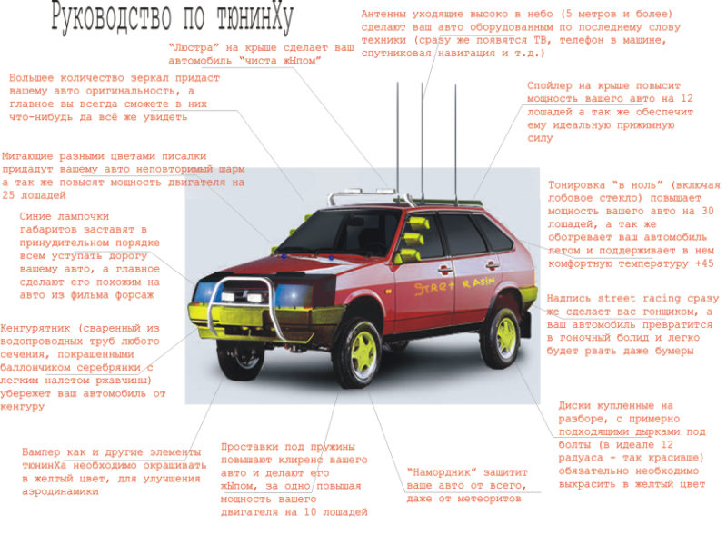 но тут новая напасть, просто тупо машина глохла. Просто вот едешь и как будто выключаешь зажигание, просто двигатель глохнет и все резко, ну мы разобрались, дело было в плате(Не помню как она называется). Ещё нам очень не везло с правым крылом, сначала сделали подтек, потом я купил полировачный диск, но он разорвал весь лак вместе в краской до металла, НУ нихрена себе полировачный диск?!? Ну в общем очень долго мы возились с моей любимой. Сколько времени я провел с ней, лежа или по колено в грязи. Сколько я пропустил пивных вечеринок с пацанами. Но это того стоило!! Вот плод моих трудов. В натуре четко, пацанская тачила. Скоро я поставлю разваренные диски и широкую резину и будет ещё круче ))