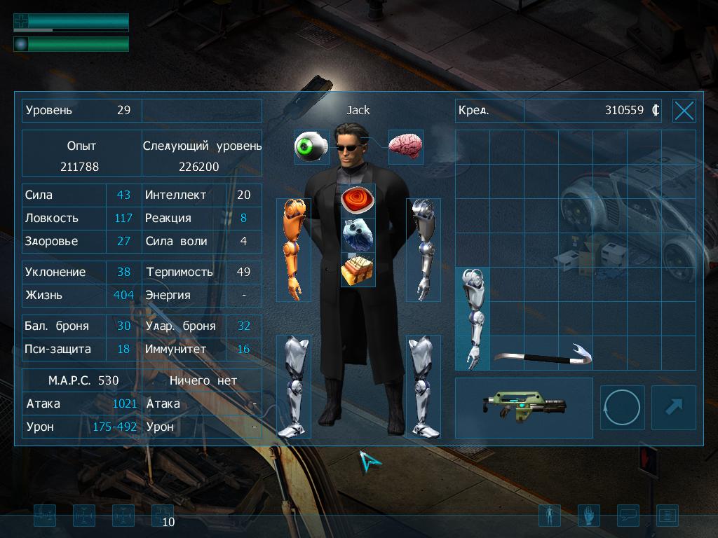 Геймплей игры уже знаком абсолютно всем. Бегаем в изометрическом виде по запретной зоне, истребляем килопачками мутантов, собираем барахло, выполняем поставленную задачу (убей-взорви-принеси), возвращаемся на базу, где проделываем нехитрые экономические операции, после чего цикл повторяется. По ходу действа набираем опыта, после каждого «левел-апа» ставим 3 очка на 4 характеристики и 10 очков тратим на навыки. Навыки разделяются на два типа: общие, которые есть у каждого персонажа, и уникальные, для каждого персонажа свои. Пренебрегать не стоит ни теми ни теми. Поскольку кругом киберпанк, ни о каких мечах и доспехах не может идти и речи. Различное огнестрельное оружие (и холодное в случае с ниндзей) – наши верные друзья. А вот на защиту собственной тушки приходят новые интересные вещи – киберимплантанты. Ваши ноги вялы а руки немощны? Не беда – мы их вам отпилим и поставим новые крутые заменители, вы сможете бегать и держать в руках оружие целую вечность. Сердце отказывает, печень барахлит? Смело ставьте кибер-аналоги. Нервишки не к черту? Новый мозг поможет вам. Заебали очки или линзы? Новые глаза с дополнительными функциями. Ну а ваше хлипкое туловище можно покрыть новой крутой кожей, которая защитит от различных повреждений. В итоге из хлипкого человечишки можно запилиться в уберкрутого бронированного киборга, настоящую машину смерти. Но, любой каприз – за ваши деньги. И как всегда бывает, самое лучшее снаряжение попадается на вражеской территории, так что отдавать много денег на их покупку – лишнее. Зато много денег уйдет на модернизацию и ремонт. Все вроде бы замечательно, но пора обратить взор и на темную сторону луны. Впервые в этой рубрике я буду указывать на недостатки игры. Но не потому, что я решил вдруг говорить и о минусах, просто сейчас действительно есть в чем упрекнуть разработчиков, да и сама игра далеко не первого качества. Первый бич пожалуй касается всех игр данного жанра. Вот из чего состоит игра: