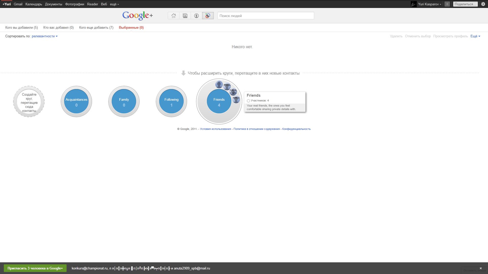 Первое впечатление от Google+ довольно таки двоякое - заходишь, а тут бац, столько всего нагромождено что и глаза разбегаются кто куда, столько много информации. Но, если собраться с мыслями и немного привыкнуть - все не так уж и плохо, слева ссылка на вашу страничку, лента новостей знакомых, родных и друзей, какой-то там чат, который можно было раньше увидеть зайдя в почту от того же самого Google, ссылка на так называемые темы, но о них чуть позже. Тут же вам предлагают найти тут друзей, начать видеочат со случайными и не очень людьми, показывают и подсказывают что же тут делать и с чего начать. Просто нужно привыкнуть, как нужно привыкать ко всему новому, будь то новые семейные трусы или еще что, например. Что уже радует - Google не стали копировать типичный дизайн большинства соц. сетей и придумали свое, за что уже можно сказать им спасибо. Наверняка каждый из нас хоть раз, да видел и может быть даже сидел в таких сетях как Вконтакте, Однотрахники, Одноклассники и, может быть и не все сидят, но наверняка многие видели самую популярную сеть в мире - Facebook. Да что там, редко встретишь того кто не видел ни одну из этих сетей и не сидел и не переписывался там с какой-нибудь Дусей Ивановой, попутно смотря на её фото и тайно мечтая "вдуть" ей. Кхм, к чему это я? Так вот, нельзя сказать что Google просто снова изобрели велосипед, нет, это не так. Зайдя туда Вы это сразу поймете, потому что как я уже говорил - они не стали копировать типичный стиль у того же Facebook (привет Дурову), это понятно, но есть и еще масса отличий. К примеру - нет кучи категорий собственной страницы типа "Мои данные", "Мои фотографии", "Мои видео" и так далее, все просто и удобно - сверху расположены всего 4 кнопки - "Главная страница", "Фото", "Профиль" и "Круги", а рядом с этим делом расположен поиск людей, который при вводе имени тут же в вываливающемся списке выдает людей с данной фамилией или именем. Для видео можно создавать целые отдельные альбомы, а само видео будет загружаться на ютуб, причем, стоит заметить, при заливке мною видеоклипа не наблюдалось никаких проблем со скоростью или обработкой видео, что не может не радовать. Есть конечно схожесть, например в том, что примерно так же можно вести некий микроблог как и в других социальных сетях, добавленные видео и фото будут появляться в этом же микроблоге вместе с вашими заметками, в остальном же особых сходств я не заметил, что не может не радовать. Плюсы. К плюсам можно отнести удобство редактирования своих данных, добавления фотографий и прочего прочего прочего. Нет, правда, все еще проще чем в любой другой соц. сети - перешел на вкладку фото, нажал большую и красную кнопку "Добавить фотографии", выбираешь "Загрузить фото с компьютера" и, внимание.. можно зажать Ctrl и выделить сколько угодно фотографий и загрузить их все сразу, выглядит это все примерно вот так: Точно так же и с видео. Это просто невероятно удобно! Однозначно в актив. Так же очень удобны и так называемые "Круги", то есть те же самые друзья. Например, если вы общались с кем то через почту Google - вы сможете добавить его e-mail себе в френдлист, и, соответственно, если у него нет еще аккаунта в Google+, он будет получать все уведомления и сообщения с вашего аккаунта в социальной сети на свою электронную почту, что так же очень удобно, согласитесь? Так же, Google предоставляют возможность создать свои "круги" друз