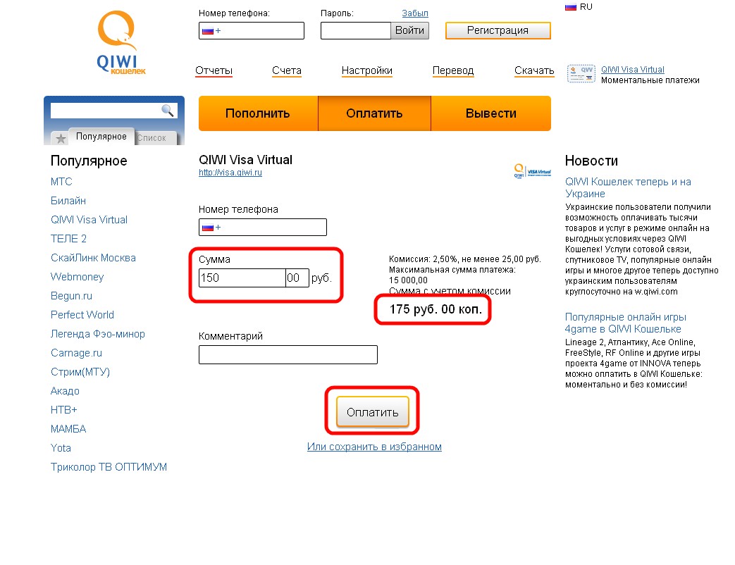 Решился сегодня купить 5000 поинтов с помощью PayPal для PBlackout и заодно решил сделать туториал. Какбы вот видео http://www.youtube.com/watch?v=-l0aM-BKHW4 Нам нужно будет: Аккаунт в PayPal, виртуальная карта Visa 1) Для начала нам нужна виртуальная карта (у меня Qiwi Visa Virtual - виртуальная Виза карта) https://w.qiwi.ru/features.action, заходим вначале регистрируемся, затем (смотрим на скриншот) Вложение 23264 Вложение 23265 Когда у нас на карте лежат нужное нам кол-во денег, заходим на http://pb.ntreev.net и нажимаем "RECHARGE" Вложение 23266 Выбираем Credit Card Вложение 23267 Выбираем PayPal Вложение 23268 Нажимаем на нужное кол-во поинтов Вложение 23269 Затем соглашаемся на выбранное и переходим в окошко PayPal, вводим данные PayPal и нажимаем Login Вложение 23270 Здесь инфо о покупке, нажимаем Продолжить Вложение 23271 Всё, мы купили нужное нам кол-во поинтов. Также кому лень всё делать, добавляемся в скайп cherfil97, 165 р - 5к поинтов, 340р - 10к поинтов, оплата Qiwi, начислю вам поинты. Для Украины Регаемся тут https://w.qiwi.com/payment/main.action Находим картинку с Qiwi Virtual Вложение 23261 Обязательно при создании Карты при себе иметь 25+ рублей, т.к создать карту стоит 25 рублей, вводим нужное кол-во денег, для 5к поинтов 150 рублей вполне подходит Вложение 23262 Нажимаем оплатить и на телефон затем придёт СМСка с реквизитами карты, затем смотрим верхнюю часть мануала и кидаем поинты. |