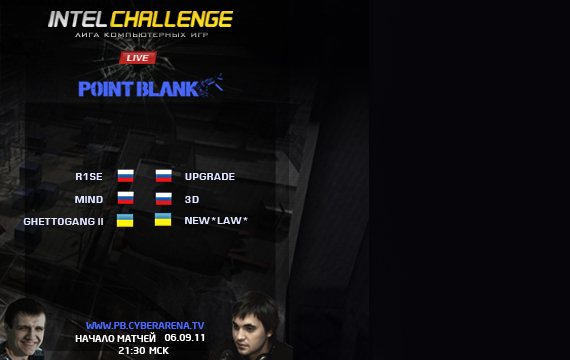 Что же дорогие друзья, после недолго перерыва на игры Российского финала WCG 2011 на наши мониторы вновь врывается 9 сезон Intel Challenge по киберспортивной дисциплине Point Blank 5x5. Море страстей, феноменальные бои, дух соревнований между лучшими из лучших, подвиги и поражения, все это мы сможем вновь ощутить в превосходных трансляциях под комментированием бесподобного Тафы. Не пропустите, это будет очень жарко!