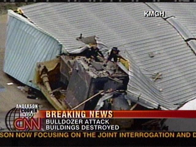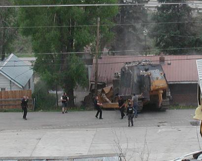 Вложение 27906 Жил-был один человек из Колорадо, имя его Марвин Джон Химейер. История про него очень интересная, поэтому прошу прочитать до конца, ведь такой человек один... Так вот, жил Химейер, работал сварщиком, делал автомобильные глушители в маленьком городочке где живут всего 2000+ людей. Назывался он Гранби, штат Колорадо. Была у него мастерская с магазином. Земельный участок под этой мастерской он официально выкупил за довольно приличные бабки порядка $15 000, для покупки он продал свою долю в большом автосервисе в Денвере. Вложение 27907 А так же в качестве увлечения, он строил снегоходы и зимой гонял на них по окрестностям городка, катая молодоженов. Как на лимузине блиать. У него даже была соответствующая лицензия на это дело. На мой взгляд, дядька был довольно добродушный, щедрый и в высшей степени прикольный. Отслужил в свое время в ВВС, аэродромным техником, и с тех пор стабильно трудился по инженерно-технической части. Дожил до пятидесяти двух лет, не женат. 52 летний сварщик Химейер успел прожить в Гранби несколько лет, чиня автомобильные глушители. Его маленькая мастерская тесно примыкала к цементному заводу Mountain Park. К недовольству Химейера и других соседей завода, Mountain Park решил расширяться, вынуждая их продавать свои земельные участки. Рано или поздно сдались все соседи завода, но не Химейер, потому что он реальный мужик. Его землю козлы из банков так и не смогли получить, хотя пытались сделать это всеми правдами и неправдами. В общем, отчаявшись культурно решить вопрос, мужика стали травить. Поскольку все земли вокруг мастерской уже принадлежали заводу, ему перекрыли все коммуникации и подъезд к дому. Но Марвин решил проложить другую дорогу, и даже купил для этого списанный бульдозер «Komatsu D355A-3» восстановив на нем двигатель в своей мастерской. Вложение 27908 Но городская администрация отказала в разрешении на прокладку новой дороги. В банке придрались к оформлению ипотечного кредита и пригрозили отобрать дом. Химейер пытался восстановить справедливость, подав в суд на Mountain Park, но в суде проиграл. Несколько раз наехала налоговая по налогам с розничной торговли, пожарники, санэпиднадзор, последний выписал штраф на $ 2500 за резервуар, не отвечающий санитарным нормам речь который находился у него в автомастерской. Подключиться к канализации Марвин не мог, поскольку земля, по которой следовало прохуячить канаву, тоже принадлежала заводу и завод не спешил давать ему такое разрешение. Марвин заплатил. Приложив к квитанции при отправке краткую записку - «Трусы» (лолшо). Через некоторое время случилось самое пичальное в жизни, умер очень близкий родственник, отец. И тогда Марвин поехал его хоронить и пока он был в отъезде, ему отключили свет, воду и опечатали мастерскую. После этого он закрылся в мастерской. Практически его никто не видел. И тут начинается самое эпичное! И вот, 4 июля 2004 года, Химейер взял конкретный реванш. За всё. Вложение 27909 На создание ниибаца-Бронированного бульдозера ушло около 2 месяцев, по одним сообщениям, и около полутора лет, по другим... Нашуярил его двенадцатимиллиметровыми стальными листами, проложенными сантиметровым слоем цемента. Оснастил телекамерами с выводом изображения на мониторы внутри кабины. Снабдил камеры системами очистки объективов на случай ослепления их пылью и мусором. Предусмотрительный 