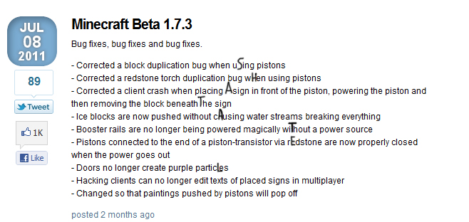 http://cracked-minecraft.ru/Minecraft_files/logo.gif Привет ребята, читая тексты про херобрайна, я задумался, а вот он реально существует, сейчас думаю, лучше бы не пробовал, ибо то что у меня вышло меня очень пугает, тема будет не очередной псевдо историей про херобрайна, а настоящая правдивая история с доказательствами, видео снять не смог, ибо клиент крашит из за фрапса, ну так вот, когда я начинал поиски херобрайна, я начал ориентироваться по шахтам, поиски долго не давали результатов, но я не унывал и продолжать искать, прошло некоторое время, около 2-ух дней, и я начал натыкаться на дыры, не обращал на них внимание, нашел букву Ш, но не стал скринить так как подумал что просто совпадение, далее я начал находить какие то дыры, стало страшно, я часто нажимал кнопку f3, что бы видеть тех кто находится рядом со мной, кто не знает, начинают показываться коды мобов которые находятся рядом с тобой, и внезапно! я увидел новый для себя код sh1tat6l, я не знал что это, и поэтому погнался за этим чудом, оно не атаковало, а убегало! Я был очень удивлен, бежал за ним, и вот мне удалось его догнать! вот что я вижу! ![]() Ура!!! Я думал что поймал самого херобрайна за яйца, но как же я ошибался.. начал приближать рисунок, и что я увидел, ааа !!! И я понял кто это... ![]() Я не знал что это за моб, а потом вспомнил что играл на версии 1.7, зашел на блог нотча,и ужас, что я вижу ![]() Пруф ![]() ![]() |