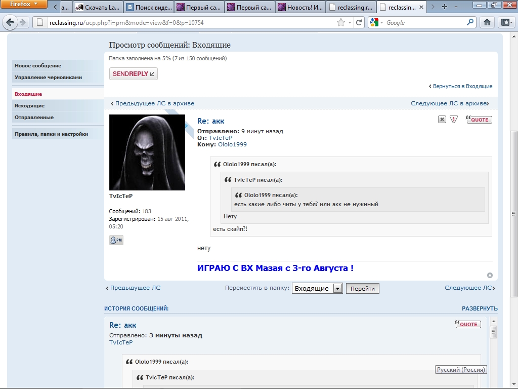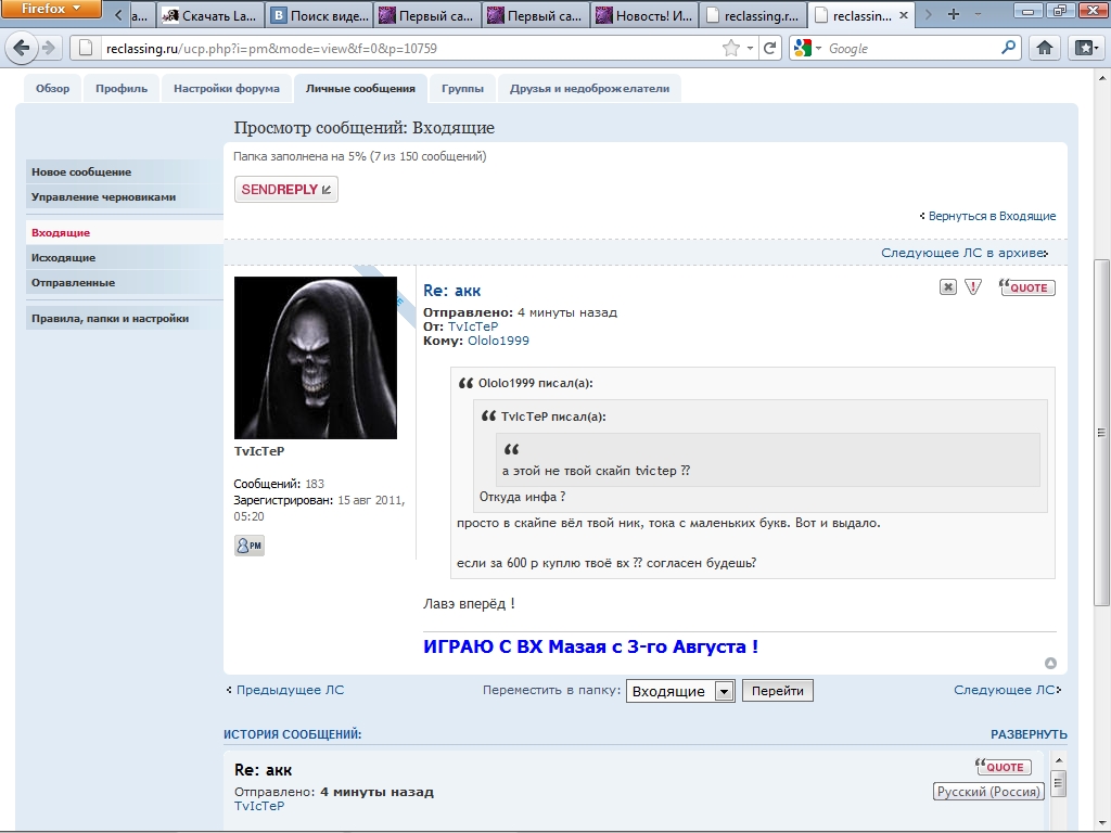 В общем порылся я на реклассинге, наткнулся на 1 интересную личность под ником "TvIcTeP ". Смотрите на подпись. Уёбак купил вх и радуется Может показаться что это стёб, но он отдаёт его другу!111111:etopizdec: Как мне помниться, он есть на гладах. Нашёл его тут Его скайп: Он канешна попытается отпереться, типа не разу не юзал, читы и бла бла бла.. но.. Такой пиздобол... Fuuu И срыыыв покров про GNOMа :61: Думаю, что надо эту уёбину забанить тут раз и навсегда Fuuu |