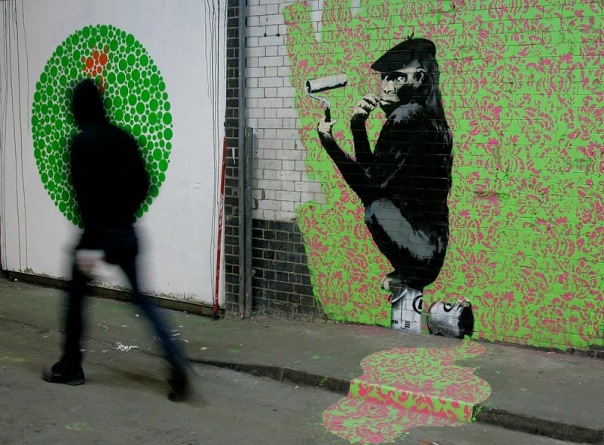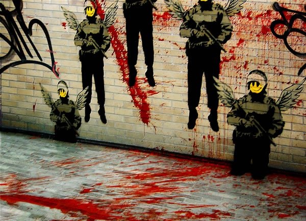 "Граффити позволило мне заговорить в полный голос, все началось с желания отомстить каким-нибудь богатеям. Наносишь рисунок у кого-нибудь на заднем дворе и решаешь, будто двор этот принадлежит и тебе. За каких-нибудь пару недель таким макаром можно "присвоить" половину города"(с)Banksy Вложение 30795 *Тема содержит много текста и картинок* Говорят, что гениев признают не сразу. Некоторых – только после смерти. Истории известны имена людей, которые при жизни были, не только презираемы, но и приговорены к смертным казням через сожжение на кострах (кому не известны, те отправляются в гугл). А через пару веков они обрели всеобщее признание и уважение, т.к. их гипотезы, идеи, мировоззрения подтвердились путём научного эксперимента. Но если человеку удается заинтриговать весь мир ещё при жизни, при этом, не показывая своего лица и не называя имени – это можно назвать уникальным случаем. Бэнкси сделал достаточно для того, чтобы называться человеком-легендой. Вложение 30797 Бэнкси (англ. Banksy) — псевдоним скандально известного английского андерграундного художника граффити и политического активиста, чья личность не установлена. Вокруг его биографии и настоящего имени ведётся много споров.Считается, что Бэнкси довольно долгое время действовал как обычный райтер, но со временем его рисунки становились всё масштабнее, а уходить от полиции ему становилось все сложнее. Однажды, прячась от английских полицейских, Бэнкси решил начать пользоваться трафаретами, чтобы экономить время. Вложение 30796 Благодаря таланту художника и остросоциальной тематике своих рисунков, Бэнкси быстро обрел популярность сначала в Англии, а затем и во всем мире. Самое удивительное, что он до сих пор сохраняет анонимность и скрывается от полиции. lolguy:nindzatroll: В январе 2011 года в интернете появились сообшения о том, что на eBay был выставлен необычный лот — клочок бумаги с написанным на ней настоящим именем Бэнкси. Продавец — американец, скрывающийся под псевдонимом jaybuysthings. В описании лота он написал следующее: Цитата:
