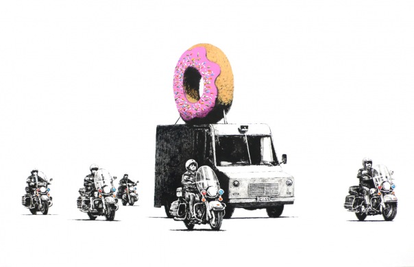 Стартовая цена лота была 3000 долларов США. После 38 ставки она достигла $999 999. На данный момент лот удалён по неизвестной причине. В СМИ также высказывались предположения о том, что этот лот выставил сам Бэнкси или его сообщник. http://www.youtube.com/watch?v=DX1iplQQJTopokerface Banksy принял участие в создании заставки к The Simpsons 22 сезон 3 серия где показал свое виденье "Симпсонов". Ну и, конечно же, существует множество легенд, типа : "Бэнкси не существует,это всего-лишь ловкая организация хачей-трюкачей действующая по всем мире." :byuuu: Ну и как же рассказывать о мастере и не показать его творений? ![]() Вконтактофилы могу посмотреть документальный фильм о Бэнкси здесь nyash2 Спасибо за внимание!Живите красиво! [by Depressive] |