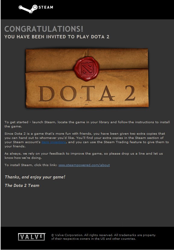 Буквально вчера мы видели анонс на официальном сайте DotA 2 о том, что совсем скоро начнут выдавать ключи на участие в бета-тесте продолжения легендарной DotA. И вот, разработчики решили не откладывать такое событие в долгий ящик - на dota2.com появилась новость о том, что первые инвайты уже высланы. Спешите проверить свою почту!
