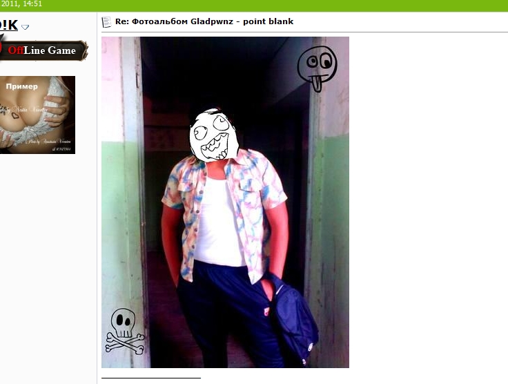 Вложение 32978 Сидел я недавно поплевывал семка да попердывал в табурет.Дарова , пацаны! И тут с диким ржачем ко мне в каюту скайп ворвался матраос Позитив. "Смотри - смотри!!!"- кричал он и размахивал руками как чайка. - "Ну показывай что у тебя там " - небрежно кинул я , созидая эту картину. Хрен его знает в открытом море люди часто сходят с ума, и видеть такое да еще и со знатным опиумным наркоманом - Позитивом мне не ново . И тут матрос достал из за пазухи какую то коробку накрытую дорогим китайским шелком, недавно отжатым у морских барыг. Позитив сдернул ткань , незаметным движением спрятал её себе в трусы и сел на коробку. Затем открыл ноутбук (благо мобильное покрытие добивает даже на далекие океанские просторы. "Смотри" -говорит - "глянь какая хуйня тут у меня в Хроме установлена" . Теперь мне не нужно ночи напролет сидеть на сайтах с комиксами. Вот есть тут такое расширение веселое, которое почти все рожи заменяет комикс-фейсами... После полу-часа дикого хохота и двуг кружек доброго грога , матрос Позитив упетлял куда то на корму. ну а я тем временем спешу поделится сем чудом и с вами , мои сухопутные друзья. https://chrome.google.com/webstore/s...autorage?hl=ru вот тут можно эту хуйню скачать . Внимание! Это расширение работает только в Хроме (Google Chrome). Если найдете такое же для других браузеров кидайте сюда, посмеемся вместе. Здесь же прилагаю к своему письму небольшую подборочку, которую я успел заснять . Выкладывайте в тему свои скрины. |