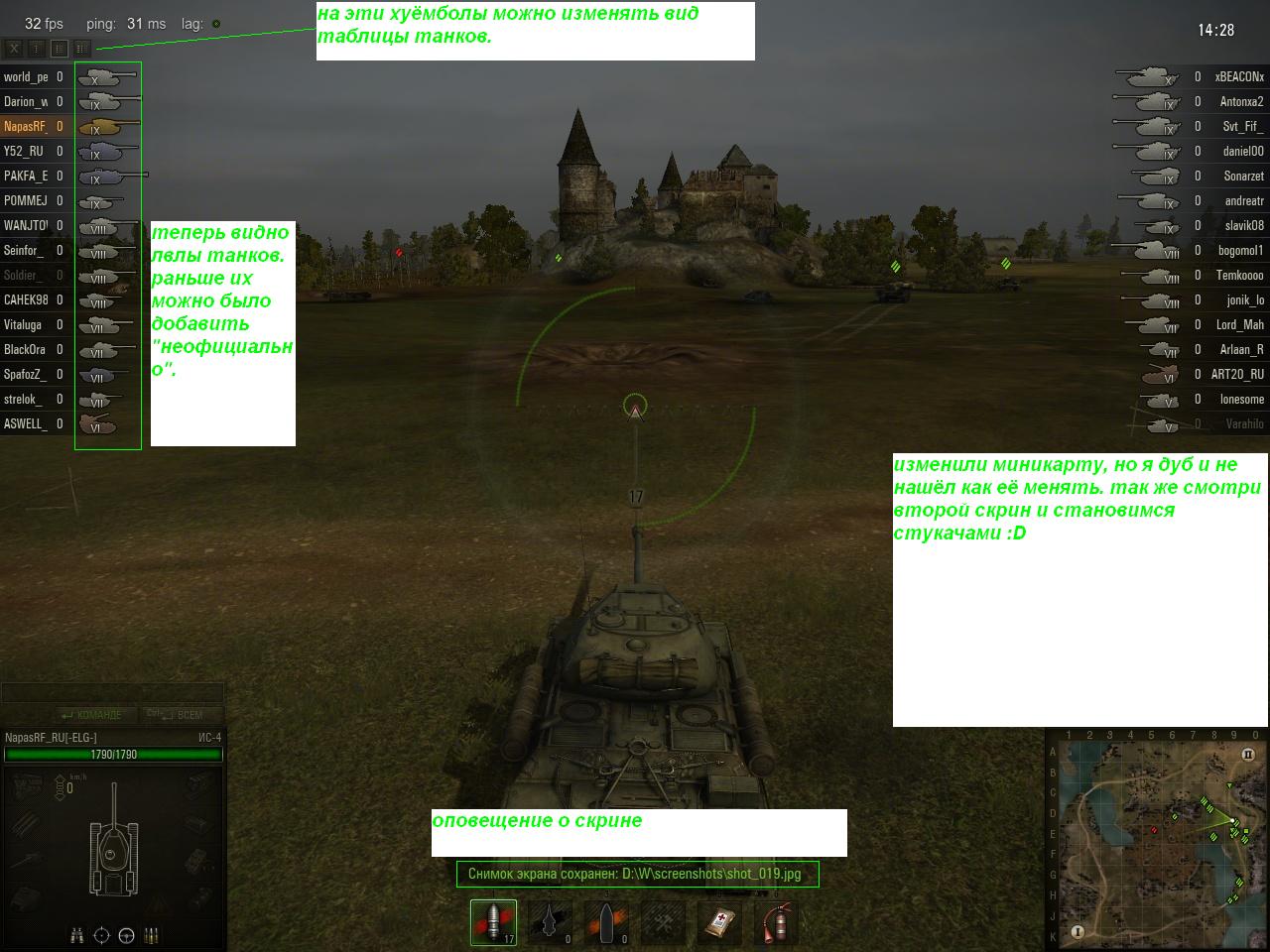Как замечание, хочу обусловиться, что моё описание обновления будет делиться на внешние составляющие и внутренние, чего запечатлеть не удалось. Безусловно не обойдётся без доли копипаста. :spalil: ИТАААК тронулись. Войдя в клиенте 070 в меню вводу логина и пароля, тут же ощутите на своей жопе первые изменения относительно 067 версии танков. А именно - это многокластерность. то есть теперь у игроков появится возможность выбирать сервер на котором играть. Это очень важная фича. Она позволит уменьшить нагрузку на сервера со всеми вытекающими лагами, вылетами, перезагрузками. надеюсь, разрабы учли предел вмещаемости. Идём дальше, и не входя в бой начинаем брызгать спермой от плюшек. Стоить сделать поправку и сказать, что дрочить стоит донатерам ну и игрокам, которые хорошо фармят кредиты. А почему, да потому что это Шкурки. Да да, это официально всеми видимые шкурки. теперь ногебаторы могут красоваться перед всеми своими ниибаца разукрашенными танками. Как видно со скриншотов, шкурки преобретаются за кредиты( игровую валюту) и золото( рубли). шкурки делятся по видам на двуцветные и трёхцветные ( не буду играть в копетана). преобретаются они на : двуцветные 7 дней, 30 дней и за золото навсегда стоимость трёхцветных шкурок в 2 раза первосходит 2цветные по всем параметрам покупки. так же цена шкурок зависит от лвла танка. =( WARNING!!! Шкурки не дают никаких бонусов к маскировке, лишь внешний вид. Так же мы пожем приклеить на своего бронированного коня клановую эмблемку. ОНЛИ ГОЛДА!1 (пс. я хз как её прикрутил и скок она стоит. кто прочухал цену скажите я добавлю). Кочнив, мы пытаемся продать танк и уаля.: новая менюшка продажи ^_^. теперь у нас есть возможность паройнажатий высадить экипаж и снять оборудование, а потом и продать. Несомненно положительная фича. Освободил место в ангаре. :niggachel: Ну а теперь кратенько о новых танках. Кредитные танки не добавлены. Добавлены коробочные (хз какая система покупки, на тесте они лежат в общем голд-доступе) и акционные( купи кв5, лёву и китайка и получи в подарок пз гидравлик) :61:. кв220 бетатестеров будет с буквой "Т". Про цену покупки писать не имеет смысла ибо танки коробочные и хз. акционные танки: СУ-85И и Pz IV Hydraulic. тактики боя и обзор танков здесь запилины не будут, ибо это работа не одного дня. Всё будет со временем. slowpok2 су-85и. Машинка-"бред". при определённых условиях баланса возможен нагиб.Вложение 34203 Неебическая скорость ( см. скрины) сменяется сменяется говнобронём, которую пробьёт любой лузер. Только цари неудачников смогут отрикошетить. неплохой ствол. Всё. удачно понагибаться. Pz IV Hydraulic Очень интересный танчик. На нём можно будет получать фан, дрочить на внешний вид, фармить и нагибаться. No comment - смотрим шоты . Мягко говоря не трушная броня ( в сравнении с пз4 и достаточно хороший ствол дабы гнуть т46) Далее идёт коробочная хуита, на которой можно светить и сливаться. А так же немного фрагать при определённо удачном балансе. БТ-СВ необычны внешний вид. Всё. В остальном - говно свет =/Вложение 34204 Немножко нагебательский говно-свет. Обладает хорошей бронёй для 3 уровня. PzII J Дуальная еботина. Не думаю что её будет балансить не выше 5 лвла. тактика - светануть - нагнуться. Ну и еще 1 акционный танк - псевдонагиба. Хотя в умелых руках и палка стреляет - кв220. в прошлом всем известный как танк бетатестеров. Заливши кончой ангар, мы нажимаем к