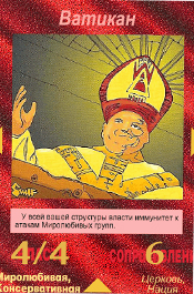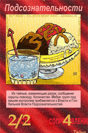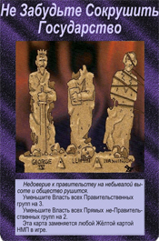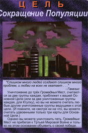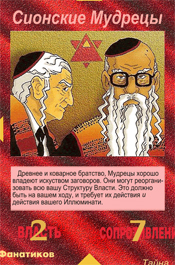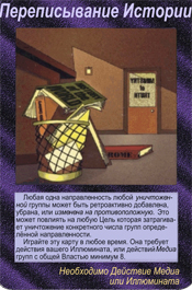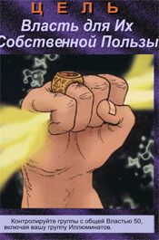 В 1982 году была выпущена первая версия настольной игры.(!) В 1995 году игра получила награду, как Лучшая Карточная Игра ? Origins Award for Best Card Game. Вот так вот, спустя 20 лет компанией Steve Jackson Games после издания книги была выпущена полноценная настольная игра."Иллюминаты:Теория Заговора.Основной элемент - карты иллюминатов.С ними познакомимся позже.Целью игры является установление единого мирового господства по всей Земле – "Нового Мирового порядка" навсегда.Сами карты в игре интересны тем, что на них изображены события, которые уже произошли в мире.Познакомимся с ними поближе.Приведу те карты, на которых изображено то, что мы уже имеем с вами в нашей жизни. 1.Переписанная история.На первой карте изображены, выброшенные книги мировой истории.Конечно же известно, что все правящие элиты и по сей день занимаются переписыванием исторических фактов, тем самым подгоняя их под себя.Доказательств и фактов очень много.В Росии даже существует комиссия по борьбе с фальсификацией истории.Можно сделать вывод, как это было так и будет. 2.Сублимация.Не буду брать инфу из из сторонних порталов, скажу лишь крато, что это "способ снятия внутреннего напряжения".Взглянув, можно сразу понять о каких "способах снятия" идет речь.Тут же собраны все бичи 21-ого века.На второй карте, на трех шариках мороженного отчетливо можно прочитать слово "Sex".Вот тут то и решается вся проблема с напряжением, пришел после тяжелого рабочего дня домой, посавокуплялся, напряжение как рукой сняло. 3.Алкоголь. Вот он, еще один бич нового десятилетия, да и не только его к сожалению.Тоже своеобразный способ снятия напряжения, можно сказать самый популярный.Главное не злоупотреблять "снятием напряжения".Та же самая ситуация, что и с сублимацией. 4.Табак.Конечно же курение, наверное даже популярней алкоголя.Хотя если это, значит и то, а хотя как знать, какзнать.Естественно тоже бич.Табак уже неотъемлемая чать общества, что сложилось благодаря геноциду. 5.Фаст - фуд.Куда же без быстрого питания, как ни странно тоже относится снятию напряжению.Хотя скорее всего ближе все таки к американцам, но как говорится,что у них, то и у нас.Воруем мы все.Это нас и губит(с)Быстрая перекуска, ГМО, болезни желудка...Наша повседневная жизнь уже не обходится без таких слов как "Макдоналдс", "Ростикс" и прочих забегаловок.К сожалению тоже бич.Новый, но бич. Все вышеперечисленные способы "снятия напряжения" можно смело отнести к пятому приоритету уничтожения людей, обобщённых средств управления – оружию геноцида. Приведу еще четыре карточки с популярными людьми и не только.К слову, эти два популярных человека были казнены, как первый так и второй.Но давайте не будем забегать вперед и поговорим об Израиле и о неком обществе "Сионе". 1.Старейшина Сион.Также известно, как "Приорат Сиона".Что же или кто же это?Более всего известно, что это тайное общество, которое фигурирует в рядам литературных произведений.Приведу в пример немного истории.Что бы вы хоть как то вникли.В популярном фильме "Код Да Винчи", есть священный грааль, по фильму якобы "источник Божьей власти".Именно эту древнюю тайну, по сюжету фильма и оберегают члены Старейшины Сиона.Выходя из контекста фильма, несложно додуматься, что Приорат - это могущественная периферия "Мирового закулисья".Интересный факт, после "слития" приората на всобщий обзор, Сион перестал быть т