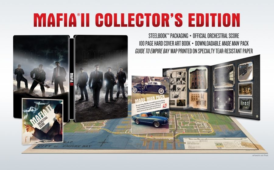 Знаменитая Нью - Йоркская аллея – как вы видите, это место показывает нам «красоту и последствия разрушительного нападения инопланетян». Люди, в панике покидавшие город, бросали свои машины и личные вещи, но некоторые всё же остались – об этом свидетельствуют граффити на стенах вида «Иисус спасёт нас» и баннер «Нам нужна еда и вода». Вид на полуразрушенный Battery Park - в мирное время популярное место отдыха, теперь заставлено остовами танков и явными следами недавнего сражения. Каньон – видение разработчиками «городских джунглей», появившихся в результате разрушения города. «Мы воспроизвели в игре различные степени разрушения Нью-Йорка с тем, чтобы разнообразить пейзаж и получить водопады, ручьи и каверны от подземных вод в лабиринте подземки» - сообщают разработчики. «Центральная станция» - последний оплот человечества в борьбе за город Нью-Йорк. Она представляет собой хорошо защищённое, многоуровневое строение. Ландшафт представляет собой переплетение современной и исторической архитектуры, вкупе с разрушениями от вторжения пришельцев. Далее появилось информация относительно коллекционной версии Mafia 2. Коллекционка будет включать: - Металлический кейс, на котором изображены двое главных героев - Вито и Джо. - Made Man Pack - загружаемый контент, который будет включать два роскошных автомобиля и два костюма для Вито, включая винтажный смокинг. - 100-страничный артбук в твердом переплете. Изучив его вы сможете узнать о семьях, живущих в Empire Bay, а также познакомиться с процессом создания игры. - Саундтрек игры, исполненный Пражским филармоническим оркестром. - Подробная карта Empire Bay. События в Mafia II начинаются незадолго до конца Второй Мировой войны, когда один из главных героев - Вито - бедный американец итальянского происхождения, возвращается из Европы в США. Вместе со своим другом Джо они погружаются в криминальный мир города. |
