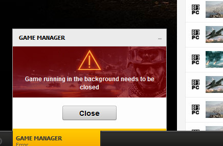 Он у тебя видит запущенную игру и хочет что бы ты её закрыл перед заходом на ледующий сервер. Убей процесс battlefield3.exe через диспетчер.