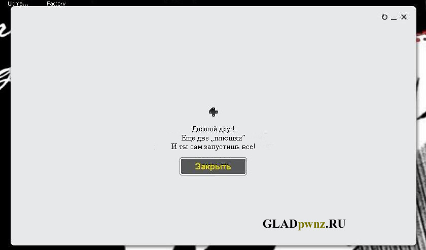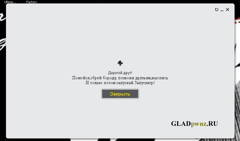 умел бы пользоваться фотошопом, что нить намутил бы) а так порадовало...про гавно) можно еще так... Дорогой Друг! у"Запускотра" месячные, просьба его не раздрожать. или Дорогой Друг! "Запускатр" пока не работает, иди посиди вконтакте