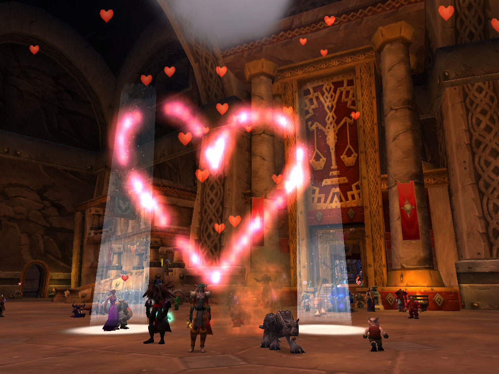 Вложение 42684 Хай всему работающему народу и учащимся.Поздравляю с окончанием рабочей недели,ведь сегодня(в пятницу),можно расслабиться,выпить стакан вина,и заснуть под тихий звук телевизора.World Of Warcraft.Анонс предстоящего обновления Blizzard же обрадовала геймеров анонсом обновления под названием "Любовная лихорадка".Посвящен он конечно же будет великому 14 февраля-Дню психических больных в Германии.Хоть событие и будет происходить с 5 до 20 февраля,просьба не забывать о второй половинке,и как следует оторваться этим безумным днем вместе со своей любимой.В самых крупных городах Азерота таится атмосфера любви,которую мы пока еще заметить не можем,к сожалению.Если же у вас нет второй половинки,вы можете от души побаловаться,подарив стражам,НПС и прочей нечисти цветы и подарки.(Может от них вам что то и перепадет вам)) Говоря вкратце,то выходит такая картинка: Список изменений к 14 февраля СОБЫТИЕ Когда: 5-20 февраля Где: Штормград, Стальгорн, Дарнас, Шаттрат, Даларан, Громовой Утес, Оргриммар, Подгород МЕРОПРИЯТИЯ