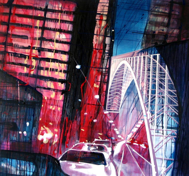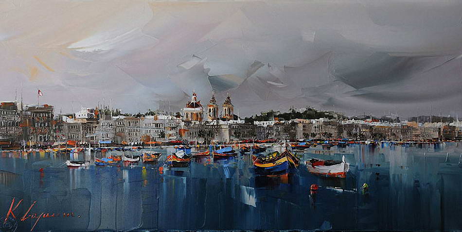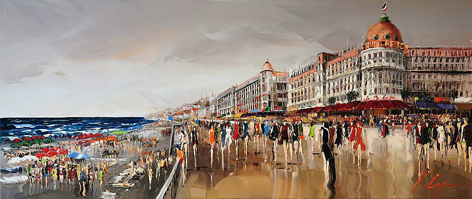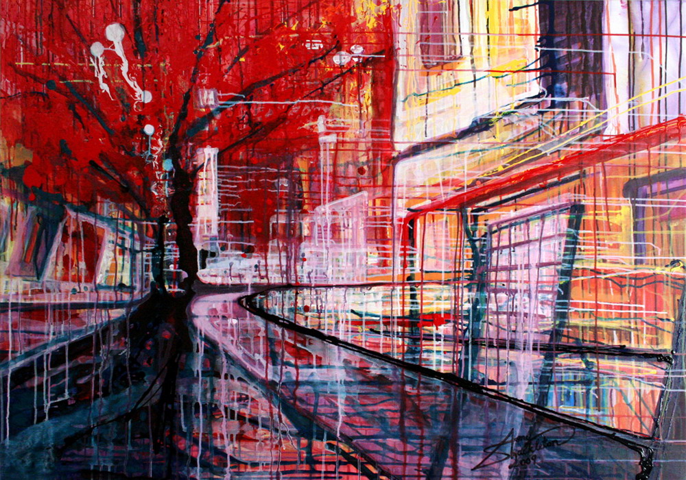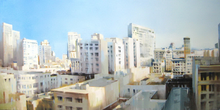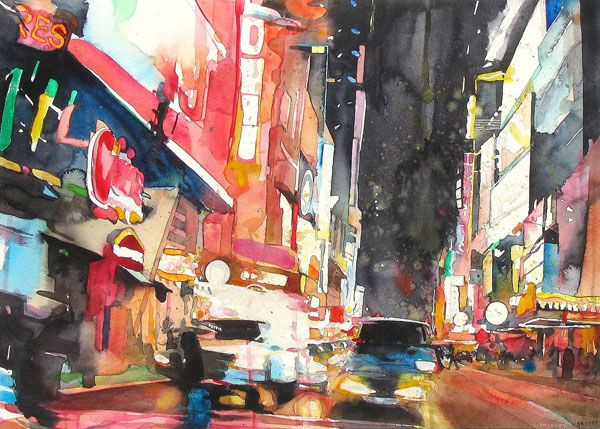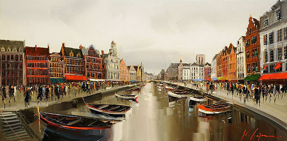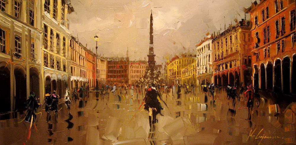 В основе композиций многих его работ лежит большое скопление людей в городе. Так же присутствуют просто масштабные пейзажы города. Достаточно приятно глазу, сильно передает энергетику города.