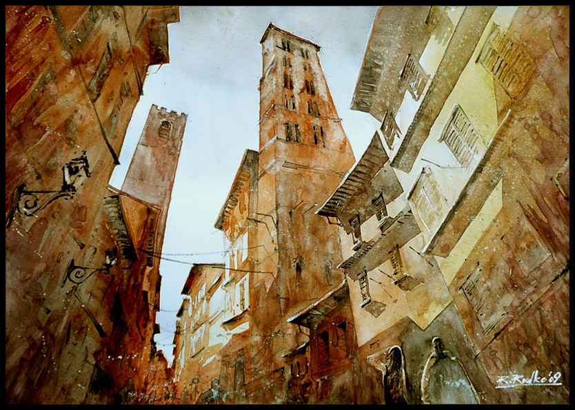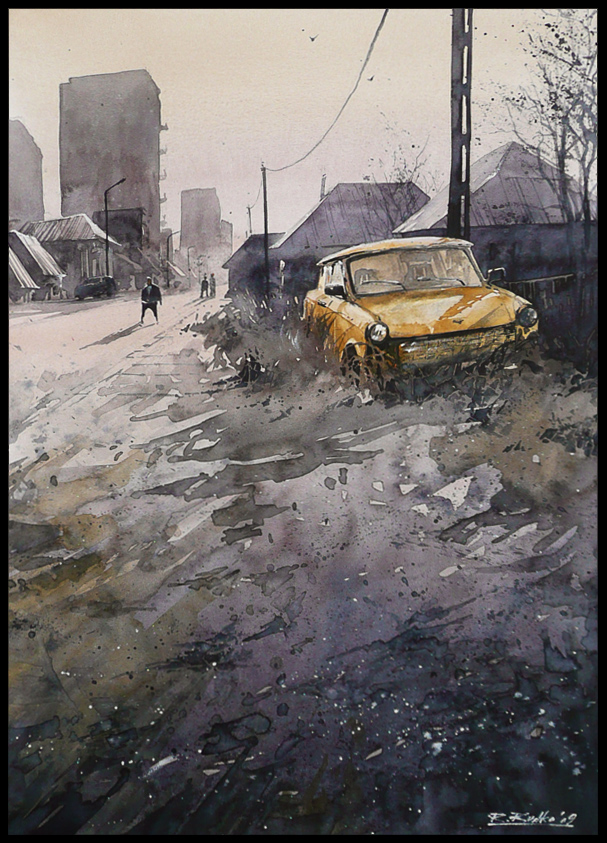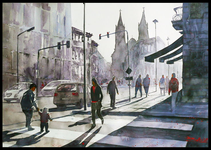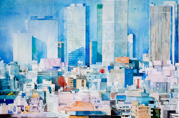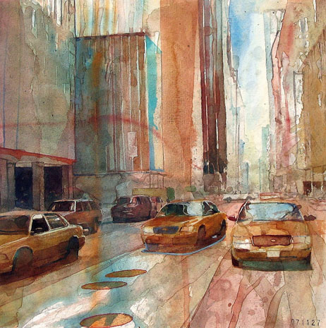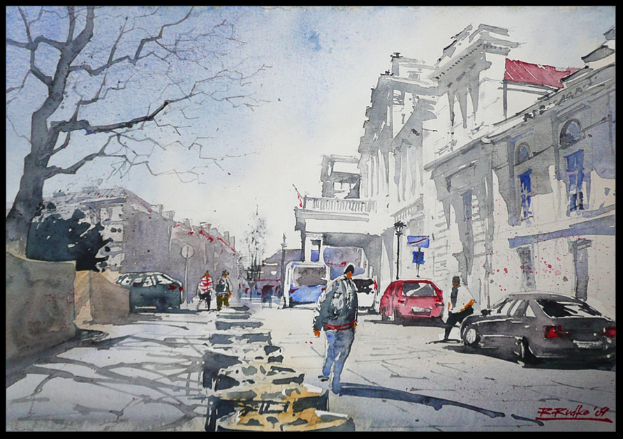 Опять же город. Очень интересная техника акварелькой.