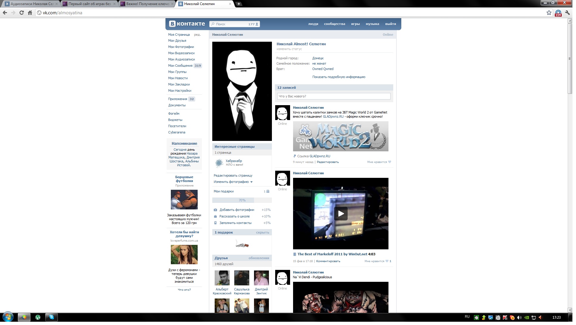 РАЗДАЧА КЛЮЧЕЙ НАЧНЕТСЯ В ПОНЕДЕЛЬНИК 20 ФЕВРАЛЯ. КЛЮЧИ БУДУТ ПРИХОДИТЬ В ПМ ВАМ НА ФОРУМЕ. ЗАЯВКИ СОГЛАСНО УСЛОВИЯМ АКЦИИ МОЖНО ОСТАВЛЯТЬ УЖЕ СЕЙЧАС. УСЛОВИЯ АКЦИИ: 1. Зайти вконтакт (или фецсбук) на свою страницу на 1 человека 1 сообщение в данной теме, за флуд и сообщения не по теме буду карать. ОБСУЖДЕНИЕ АКЦИИ В ТЕМЕ: http://gladpwnz.ru/forum/showthread.php?p=909203 Куда вводить ключи: Вложение 45329 |