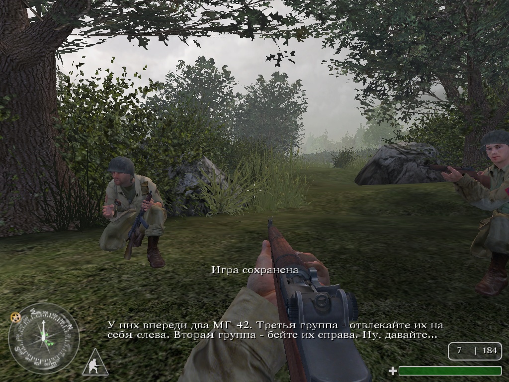 Здравствуйте, любители истребления разумных пикселей по ту сторону монитора. Прогресс идет, в том числе и в игрострое (вроде бы как). Глядя и играя в современные игры, в голову то и дело лезут воспоминания об играх прошедших, которые радовали давным-давно и на нынешнем фоне кажутся антиквариатами. Могут ли еще они порадовать снова? Или они безнадежно канули в прошлое? Бывают игры-одиночки, которые не имеют никаких продолжений и не являются частью какой-либо серии. Но часто разработчики, поймав волну былого успеха, клепают продолжение к хиту и вскоре уже не могут остановиться. Годами часть за частью они отсекают ненужные цифры от нужных, в итоге чего на свет появляются целые серии и поколения игр. Речь сегодня пойдет о таком титане, как Call Of Duty, но не о всей серии целиком, а лишь о первом камне, самом твердом, который и стал фундаментом для всего остального. Хотя в последнее время кажется, что это был не фундамент, а лишь стена, которую со временем хулиганы слой за слоем покрывали новыми граффити. Что мы знаем о первой части знаменитой «калды»? Это шутер от первого лица, созданный компанией Infinity Ward под крылышком Activision в 2003 году. И все? Нет. Что же тогда его отличало от легиона остальных FPS? А просто: разрыв всяких шаблонов. Действие игры разворачивалось во время Второй Мировой Войны, что уже несомненно плюс, ибо события имели непосредственную связь с реальным миром, в отличии от других шутеров, которые рассказывали а какой-нибудь фантастике. Это как глоток свежего воздуха. Главные герои (неужели) были отнюдь не из ряда всемогущих уберзолдатен, а из ряда обыкновенных солдат, которые просто напросто защищали свою родину. Ключевая фраза тут именно «из ряда», ибо воевать приходилось не одному, а в компании таких же, как и ты сам, солдат. Вы не супергерой, вы не Дюк Нюкем и не Гордон Фримен, пуленепробиваемый и с арсеналом за спиной - это не про вас. Вы только что прошли скорую военную подготовку и отправились на фронт. Не успев нюхнуть пороху, вы оказываетесь на поле боя, кругом трупы, кровь, кишки, артиллерия глушит вас смертоносными снарядами, любая пуля может стать роковой, а вам еще нужно добраться до цели и исполнить свой долг. Технически перед игроком стоял обыкновенный шутер от первого лица. Вид «из глаз», пушка в руках, враги и длинный «коридор». Только теперь воевать приходилось не одному, но и силы противника были преобладающими. Последовательный коридорный выпил врагов в одиночку превратился в тактическую перестрелку, ад, войну и подвиги. Но это не было лишь беспредельным отстрелом фашистов, постоянно требовалось выполнить какие-то определенные тактические задачи. Прорваться, обороняться, устранить технику врага или целый военный объект. Происходило все на фоне самых различных военных декораций. Все это создавало даже нужную атмосферу. Загрузка каждой миссии сопровождалась дневником того или иного солдата. А каждая ваша смерть или победа – цитатой различных исторических личностей или философов. Не последнюю роль играла и кинематографичность происходящего. Обилие скриптов прилагается, однако в разумных пределах, чем не могут похвастать следующие игры серии. Был хоть и не важный, но вполне приемлемый для такой игры сюжет, заключающийся в различных боевых ситуациях. Были и персонажи, в частности, ставший уже культовым рыжий усатый анг