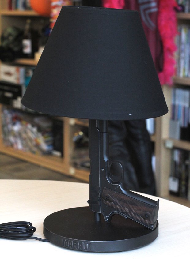 В честь этого, Дон Гандон из южного района Италии принял решение запустить завод по производству настольной лапмы выполненной в виде Кольта M1911 в размере 200 экемпляров. Стоимость лампы Дона Гандона я не знаю, а так же и того, где ее спиндорить. |
