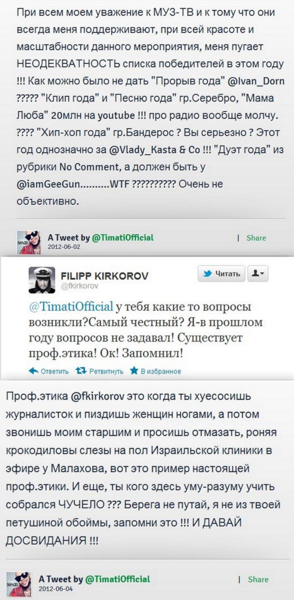 Ну и под занавес, Киркорова опустил Тиммати в твиттере)))