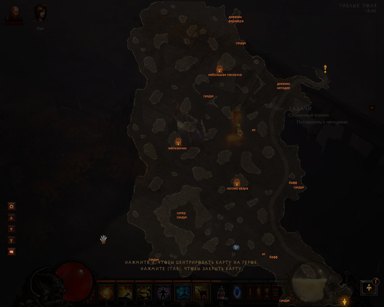 Насколько я помню, близзарды нам обещали случайно генерируемые подземелья в каждом новоначатом акте. Лично я этого не заметил и поэтому начинаю делать небольшие карты со всеми обозначениями. Первая карта - это гиблые поля. Смотрим ниже, приближение по клику.