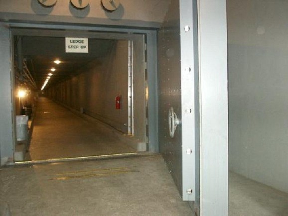 Здравствуйте, гладовчане! Вот уже давно я хотел бы поведать вам об этом здании. На самом деле ничего особенного, отель, как отель, находящийся вдали от пыльных городов, в тихом лесу, на холмистой местности. Постояльцам одного из крупнейших американских отелей, расположенного в штате Западная Вирджиния, предлагают эксклюзивную экскурсию, которая быть может и не придется по нраву кому-то, но все у этого здания найдутся ценители архитектурно-инженерной области. За умеренную плату вы можете побывать в этот бункере и почувствовать себя крупной шишкой американского правительства тех времен. Почему в прошлом времени? Потому, что он уже не представляет абсолютно никакой стратегической особенности, после того, как один из журналистов написал статью о нем. Теперь он служит исключительно для экскурсий, но все же, до сих пор, посетителей не пускают в отдельные комнаты. Снаружи отель выглядит довольно привлекательно, это прекрасное место для отдыха от городской суеты с экологически чистым воздухом и комфортабельными номерами. Этот невзрачный на первый взгляд дом более 30 лет скрывал гос тайну США. Если бы в мире началась ядерная война, то именно это здание заменило бы вашингтонский Капитолий, да да, именно в нем вы бегали в MW 2. Хоть о складе и знали всего несколько человек, на протяжении всего времени он держался в постоянной боеготовности. Уже тогда, когда закладывался первый фундамент, было очевидно, что это будет не простой подвал, в котором будут ныкать хавку. Балки, на которых стоял фундамент были глубоко закопаны, стены выполнены из высококачественного армированного бетона. Выше на картинке, показана дверь(одна из двух), с которой и начинается бункер. Чудовищных размеров стальная дверь, весом в 25 тонн и толщиной 50 см. Так она выглядит снаружи и изнутри: По расчетам изготовителей, дверь могла выдержать ударную волну и запредельную температуру советских ядерных боеголовок тех времен, но строение не задумывалось, как бомбоубежище, оно служило запасным Капитолием. Но он бы не смог выдержать прямое попадение ядерного заряда, именно поэтому место постройки было выбрано таким образом, дабы избежать этого прямого попадания. Конгрессмены должны были находится в бункере на протяжении 40-60 дней, за это время радиационная пыль должна была улечься, после чего на поверхность стало бы безопасно выходить на поверхность. За воротами скрывается более 150-и комнат, толщина стен которых 1,5 метра. Общая площадь составляет 2 футбольных поля. Бункер подразумевал размещение обоих палат американского парламента, а так же обслуживающего персонала - в сумме на 1100 человек. Все двери и переходы комплекса находились под постоянным контролем, простому человеку на территорию было не попасть. Если бы случилась война, то конгрессменов в срочном порядке подвергли бы эвакуации в это место. По прибытии, все поступали в комнату, снимали одежду, после чего которую сжигали. Затем шли в душевую, где мылом и водой смывали возможные заражения. После чего, всем выдавали новую одежду, всем без исключения одинаковую, дабы избежать конфликта. В кабинетах, где конгрессмены должны были работать, воспроизведена привычная атмосфера, чтобы первые лица нации не отвлекались от управления страной. Так же авторы этого бункера позаботились о психическом здоровье своих обитателей. Половин