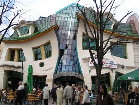 Инженеру из Польши Дэниэлу Чапиевски удалось спроектировать здание, которое, наверняка, навсегда войдет в историю современной архитектуры. Этот дом в польском местечке Шымбарк стоит на острой крыше почти без фундамента. Этот перевернутый дом строился на протяжении 114 дней — строители очень удивились проекту, но выполнили его точно и в срок. Теперь это здание стало очень популярным аттракционом, сюда приезжают туристы и архитекторы со всей Польши, чтобы посмотреть на это необычное здание.