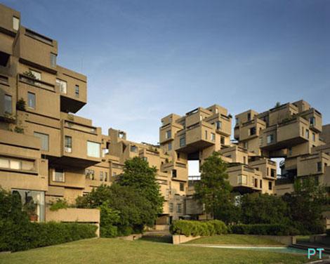 В жилом комплексе «Habitat 67», расположенном в канадском Квебеке, квартиры соединяются подобно кубикам из конструктора. Эти квартиры отличаются от обычных городских большим открытым пространством, благодаря отсутствию стандартной вертикальной структуры, а также собственным двориком.