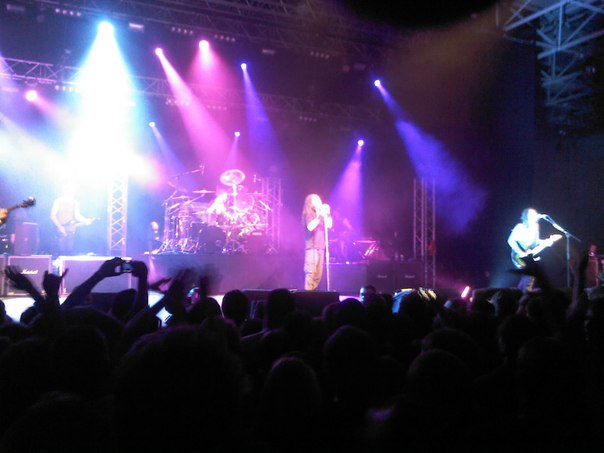 25 августа, боясь пропустить хоть малую часть запланированной программы, я стоял с девушкой у дверей здания, где состоялось мероприятие, уже в 2 часа дня. К слову девчуля у меня довольно равнодушно относиться к тяжелой музыке, но поехать глянуть мега шоу не могла не согласиться. В такое раннее время рядом с нами под дверьми стояли самые преданные фаны, в татухах, с пирсингом и хаерами, я даже почувствовал себя ущербно в своих обычных джинсах и кофте. Выступление самих корнов было запланировано на 9 часов вечера, а значит надо было провести 7 часов, стоя на ногах, и разогреваться местными группами и коктейлями. Как только на второй сцене выпустили разогрев, уши заложило и в голове зазвенело, а из всего звукоряда была ясна только роль ударника. Дикое месево из ударных, гроула и скрежетания гитар. Но уже тут меня ждало первое откровение - группа Аэдра из Кемерово. Ребята качественно отличались среди остальных групп разогрева и приобрели своим коротким выступлением как минимум двух новых поклонников, меня с моей заей. И вот время подходит к 9, все тело уже не устало, а просто болит от стояния, а хмель от коктейлей сходит, ибо я хотел все воспринять трезвым умом. Интересный факт, что на главной сцене перед самим основным шоу выступали парни, в которых я узнал организаторов концерта, удобно устроились, но похуй, отработали она на 100%. Ровно в 21:00 начинается тихий проигрыш интро зал взрывается, через минуту участники группы занимают свои места на сцене, казалось еще чуть чуть и крики заглушат музыку. Но тут каждый музыкант прикладывается к своему инструменту, не оставляя шанса зрителям перекричать себя, пошел запил. В этот момент внутри меня будто все подпрыгнуло, уперлось в грудной клетке и смешалось, видно было что никто в зале не остался без реакции. Музыка гремела, все сопровождалось световыми эффектами, дикие эмоции Девиса, драйв ударника, к тому же первые песни были из нового альбома - никто не мог устоять на месте. Сам я поначалу в силу природной скромности стоял онемевший, но продолжалось это не долго, вскоре я уже скакал, задрав руки вверх, выкрикивая слова песен какие мог вспомнить. Казалось сердце пытается вырваться из груди. А когда ноги уставали от скакания, я просто стоял с открытым ртом и чувствовал состояние нирваны, когда слезы наворачиваются просто оттого, что в голове только музыка, в животе круговорот эмоций, а в душе счастье. Помню как срывал голос во время барабанного соло Лузье, после которого последовал Blind, и когда Девис вышел с волынкой. Было еще великолепное соло на гитаре во время исполнения кавера Пинк Флойд Another Brick In The Wall, на котором мои голосовые связки поняли, что ситуация для них почти плачевная. Моя же спутница тоже не могла стоять на одном месте, и позже признавалась, что если бы знала что будет так пиздато, выучила бы наизуздь все песни. Я несколько дней не брался за эту тему, потому что не мог собрать воспоминания от выступления в кучу и подобрать нужные эпитеты, чтобы описать то состояние, в котором прибывал на протяжении двух часов, но кажется это у меня так и не выйдет. Надеюсь кто прочтет это, тот сумеет представить и почувствовать хоть часть того, что я описал. |
