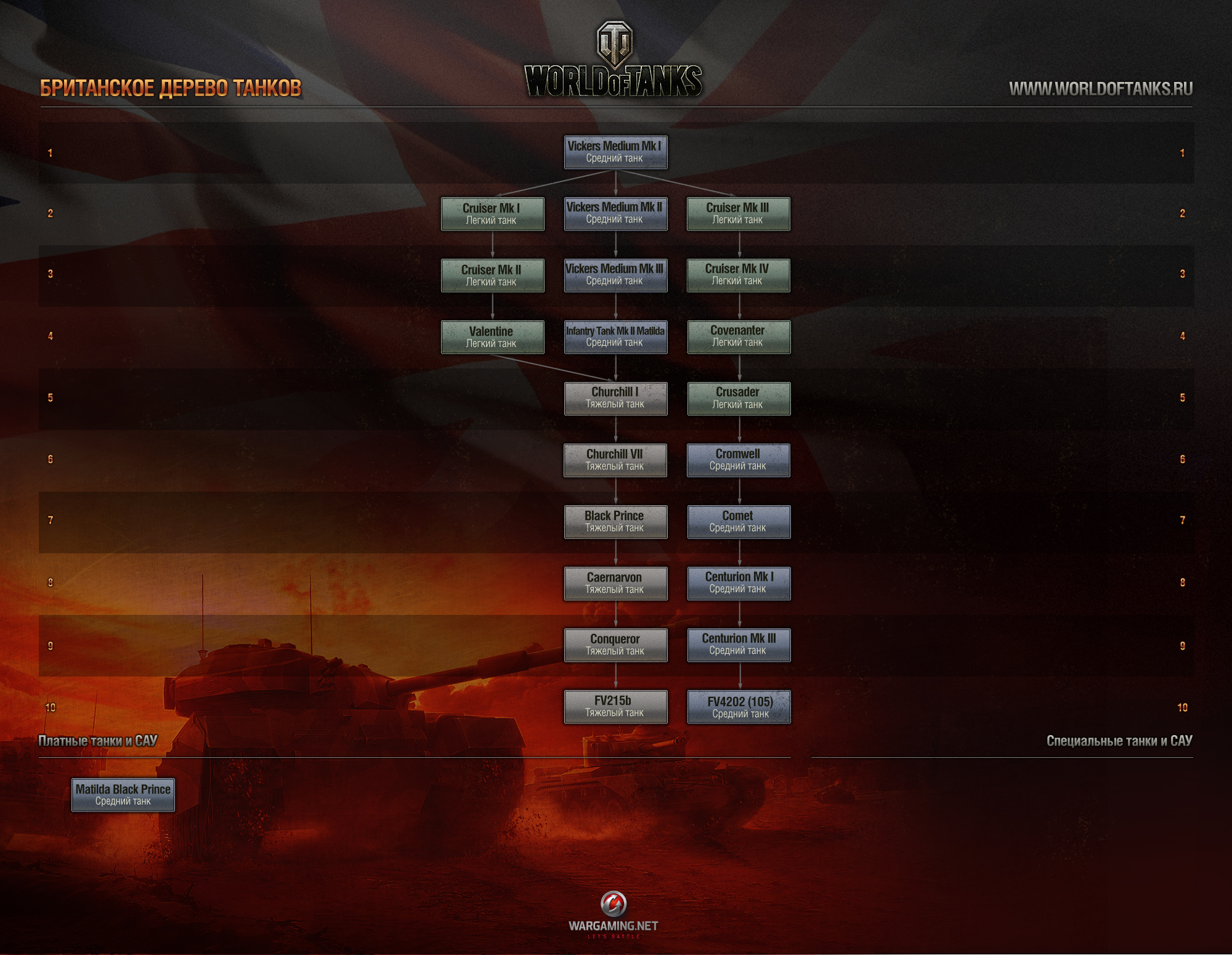 За неделю произошел ряд знаковых событий, таких, как выставка Игромир2012, анонс обновления 0.8.1 и запуск тестового сервера, новая акция, пересмотр «снарядной» политики, и небольшой фап-уголок школьника с все того же БомжеМира2012. Ну а разделы историй, сказки танкиста, обзор прессы, превью финала WCG2012 и сувенирные часы – все это херня, не достойная нашего илитного внимания. Начну с, пожалуй, главненького: голдовые снаряды с выходом обновления 0.8.1 любой рандомный Алёшка сможет прикупить за игровую валюту – серебро а.к.а кредиты. Что мы имеем. Варгейминг под эгидой «Все равны» предоставят шанс недонатерам обзавестись самыми пробивными снарядами, шьющими как хуец дырявую шлюху ВЛД Мауса. Теперь они в аркадном прицеле, не о чем не думая, смогут наносить дамаг и заветная нормализация брони вновь соснула. Ведь ВГ прислушивается к большинству. Криворукому, ничего не пробивающему, ноющему большинству. Правда, есть два нюанса. 1.Данное нововведение тестовое, и по итогам статистики в патче 0.8.2 все могут вернуть обратно. 2.Небольшая арефметика. Берем, к примеру, столько вагинально любимый танк всей школоты ИС-4. Его голдовый снаряд стоит 10 золота. Если переводить это в кредиты, получается 4000. Ебал я в рот. Хотя снарядов с пятак таскать с собой можно. Алеши разорятся в любом случае, к тому же, я уверен: и голдой они не нагнут. Количество долбоебов на КВ-1 в рандоме возрастет. На общий тестовый сервак было загружено обновление 0.8.1, основой которого безусловно служит британская ветка тяжелых и средних танков. На тесте я не побывал, т.к. в очередной раз куча школьников меня не пустили, но говорят о нагибательности британского топового СТ FV4202 и его скором однозначном нерфе. Так же танк британии первого уровня обладает мего ахуенным для песочного дна фугасным орудием, и предположительно, будет втаптывать нубов в грязь. В общем и целом, все подробности о британской ветке станут доступны позже. А сейчас скриншот дерева развития, скриншоты танков. Скрины танков тут> http://worldoftanks.ru/media/show/1262/ Тест продлится предположительно до 18 октября. Наряду с британскими танками, будут доступны следующие изменения. В частности «в продажу добавлены премиумные машины: советская ПТ-САУ 7 уровня СУ-122-44, немецкий средний танк 7 уровня Panther M-10, немецкий средний танк 6 уровня Pz IV Schmalturm». Из всех премов особое внимание можно уделить «Шмали», на который я покатался на лайве. Вкратце – старый пз4 с доп.экранами. Нагибает. Panther M-10 – на любителя, вернее дрочера немецкой техники. Ничего кошерного в танке нету. СУ-122-44 - не катался, но осуждаю. Цитата: