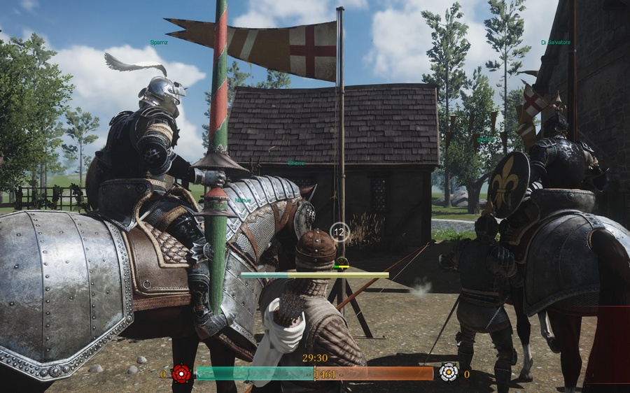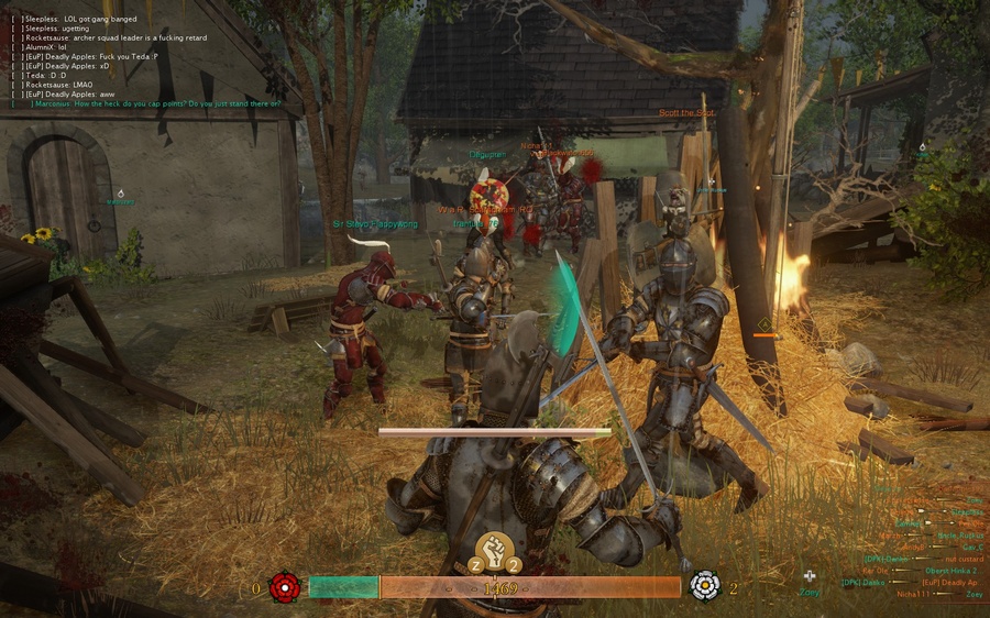 Жанр: многопользовательский action Разработчик: Fatshark Платформы: PC Дата выхода: 02.10.2012 В то самое время, когда происходят действия игры, никто и не называл, растянувшуюся на 30 лет, английскую междоусобицу Войной Роз. Этот термин был придуман несколько позже историками. С нашей стороны этот конфликт известен как последняя большая война Средневековья. А поскольку эта крупная Средневековая война последняя, то именно она подойдет для создания мультиплеерного исторического action'a. Примером тому могут послужить Mount & Blade: Warband и мод Age of Chivalry, получившиеся очень даже неплохими, после чего шведы из Fatshark не растерялись и бодренько напилили свою новоиспеченную War of the Roses. Стоит заметить, что многим эти современные конфликты порядком надоели, одна КалДа, со своей опустившейся репутацией, яркий тому пример, что ж, прекрасно теперь начинается эра брутального средневековья. В отличие от того же Mount & Blade здесь нет одиночки, только мультиплеер, только хардкор. Ну и участников конечно же значительно меньше в лучшем случае по максимуму - 64 слота, а как это получается обычно - 32 против 200 M&B. Конечно же битвы получаются менее масштабными, но это компенсируется при помощи респауна прям посреди баталий на поле боя, рядом с командиром, возможностью перевязки сослуживцев и других фишичек, тем самым динамика боя увеличивается. Из многочисленных стычек за 30 лет, разработчики выбрали 7 наиболее значимых сражений Войны Алой и Белой розы, но стоит отметить, что достоверные исторические локации в этой игре не более чем фон. Цель обоих представленных режимов - завоевание - захват и удержание точек. Все это можно с натяжкой назвать организованным, поскольку массовое поебашилово в основном в считанные минуты превращается в неразберимый мордобой и хз кто кому проебывает, если смотреть со стороны. В отличие от M&B осады в War of the Roses отсутствуют. Конечно же их и в реальных Войнах Роз не было, но все же вы ведь не симулятор создавали мать вашу, могли бы и пренебречь такими мелочами. Боевая механика становится несколько проще представленной в Mount & Blade, а именно: вместо свободного мечемахания как только душе вашей угодно и статичных блокирований ударов - 4 стандартных удара и позиций блока(слева, справа, сверху и спереди). Конечно же оценив игру поверхностно многие скажут: "Ф песду это мыльное кинцо!!1", но поиграв достаточное время вы поймете, что в ней присутствуют некоторые скрытые элементы присущие той же World of Tanks: доспехи коцаются сильнее не только разным оружием, а так же разными ударами. Как и в реальности наиболее пробиваемые места - это стыки доспехов, а колющим ударом можно нанести дамаг более критичный чем рубящим. Ну а в основном рукопашные схватки происходят тупым сиганием в сторону соперника хаотично размахивая ножиком. Однако, если вы играете лучником, то вам будет несколько проще, все превращается в своеобразный шутер. Правда он кажется настолько слоупочным, что битва алкашей у падика смотрится как нихуевый боевик, учитывая скорость перезарядки арбалета. Немалое веселье начинается после покупки лошади, которая даже здесь стоит немалых денег, как и фулл топ комплект брони. Конные схватки в War of the Roses тоже несколько проще, чем в Mount & Blade – нет нормальных рубящих ударов с оттяжкой, да и лошадью управлять труднее в виду неудобности, например мне на скаку стрелять вообще не в