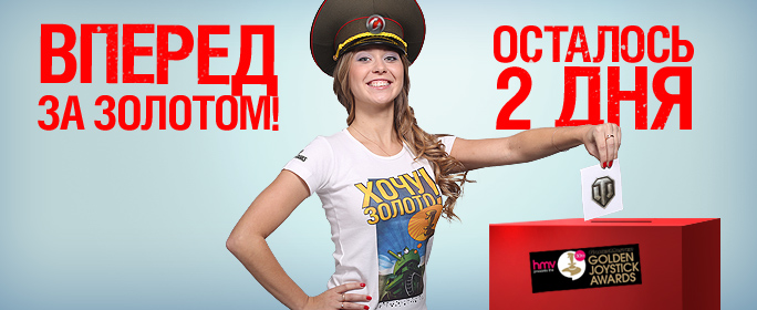 Плюшки в акции "Погоня за Golden Joystick" будут только в случае победы wot в конкурсе. А так просто "утроенный опыт за первую победу на всех видах боевой техники."