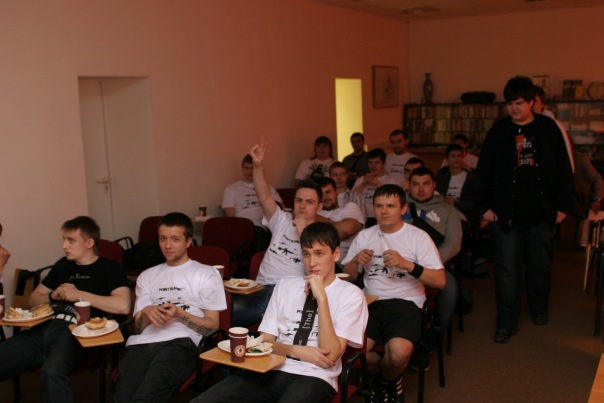 Но сейчас не об этом, а речь пойдем как раз о прошедшем турнире "Сунь Мастеру" в Корейском центре. Народу привалило я вам скажу достаточно, не продыхнуть не пернуть, хавчик как и обещали за "спасибо", то есть подошел, взял, убежал. Трансляция велась аж в трех помещениях, основное где сидели игроки и зрители, второстепенное где собрались в основном участники ну и третье в подвале, которое пустовало из-за того, что бравый кореец об этом сообщил слишком поздно. Первым делом встретил всех ребят, Дримов, Зембиков, Зешек, Аоксов, все парни были на позитиве, веселились, юморили, в общем отличная дружелюбная обстановка. Так как все приехали к 12, то пришлось ждать пока отыграют парни из Кросс Фаера. Скажу лично от себя, что либо я нихуя е шарю в кф либо реально говно какое-то, я так и не понял почему пушка в руках игрока двигаеться как фалос, вперед-назад и что за сраные надписи "мастер", для меня это было дикой тайной. Сами же игроки кфа, хоть и достаточно веселые и приятные люди, но всем по-моему было не более 16-15 лет, я когда увидел высыпавшуюся толпу после очередной игры, кфников, то представил картину, в которой "Злой дядя, серъезных размеров из ПБ (а в ПБ именно такие, по большому счету все достаточно взрослые крепкие) выносит в ПейнБоле кфника прикладом..." мне стало страшно за детей. Единственное, то, что Волосатое Чудо очень хорошо выделялся из этой общей массы, конечно вы зададитесь вопросом какого хуя он оказался в КФ? Все достаточно комично, ему в ночь перед турниром позвонили пацаны из кф и попросили сыграть за них, ибо кто-то из тимы попро сту положил хуй илимама не пустила. Чудо есессно не долго думая согласился, один хуй посмотреть ехал на ПБ. Таким образом команда Чуда въебала 2 место! По большому счету Рулил Чудо, который кф вообще не видел до вчерашнего дня, но достаточно веселая итуация, вот так он отхватил сладкие призы всего за пару потраченных часов, поздравляю его, при том он показал, что ПБшнику похуй где, он везде начнет рулить. Теперь касаемо самой части ПБ и трансляции. Говорить тут много не буду, как прошла трансляция в интернет я не ибу, говорят подлагивало нехиуево, у нас на втором мониторе было все пучком. Ну а сами игры финальной части, получились какими то скучными, за исключением наверное Зомбисов и Зе, матч был эпичен, я почему на тот момент уже знал, что Зомбисы провалят атаку на Люке, ибо Зе должны неплохо дефить, да и сама по себе карта такова, что тут за деф легче (Люксвиль), на деле оказалось все более феноменальной. Зомблисы тащили за раш, под конец когда оставалось для победы взять 1 раунд, их въебали, но после такого счета за раш, уверенность, что щас Зомби въебут Зе на дефе, появилась точная. На деле все получись по иному, Зешки въебали Зомбисов, почему деф не вышел, хуй знает, но факт остается фактом. Тем не менее это была очень напряженная игра. Чего сказать про остальные не посмею, Дримы вс Зе - по нулям почти, Аое-Дримы - опять в одни ворота, финал Зе еще как то начали бороться но потом резко сдали, в итоге три скучноватые игры, одна достаточно интересная. Комментить игры в одни ворота сложно, обычно все одно и то же и проявить эмоциональных всплесков не получится, толку орать "НИХУЯ СЕБЕ ОНИ ВЗЯЛИ 6 РАУНД" когда игра идет быстро и это 6-0...Да и сложновато в реальном времени еще пытаться не пропалить команды, я с радостью хотел скаать "Напас
