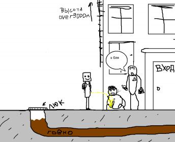 В общем ситуация такая: идете вы после школы, института, работы, бухыча домой, с мыслями рубануть в любимую мморпгешку или просто подрочить на Семинович. Идете значт, в одной руке у вас щит (вы ярый фанат рпг тем) в другой авоська с хлебом и батлом молока (да такое возможно) и тут у подъезда замечаете двух быдловатых интеллигентов. Один из них, завидя вас уважительно выкрикивает "ДИСЮДА НАХ!". Соответственно желания подходить для развития бурной полемики вам не охото, но домой надо иначе мама отругает. Путей обхода всего три, первый это люк и труба с говном, второй лестница, но живете вы на 9.000 этаже (Лужков построил внезапно), ну и третий получить пизды. Какие действия? А вот такие, варианты палим под спойлером: