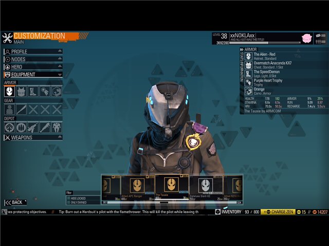 Шлем, разработанный Texture повышает защиту и здоровье игрока, однако, снижает скорость восстановления HRV и его максимальное количество. С другой стороны. отличным вариантом станет другой шлем, разработанный специально для Рейнджеров, он наоборот повышает скорость восстановления и количество HRV вашего персонажа. Оба шлема стоят в пределах 500 ZEN (5$). Их можно так же приобрести за игровую валюту, как на время так и навсегда.