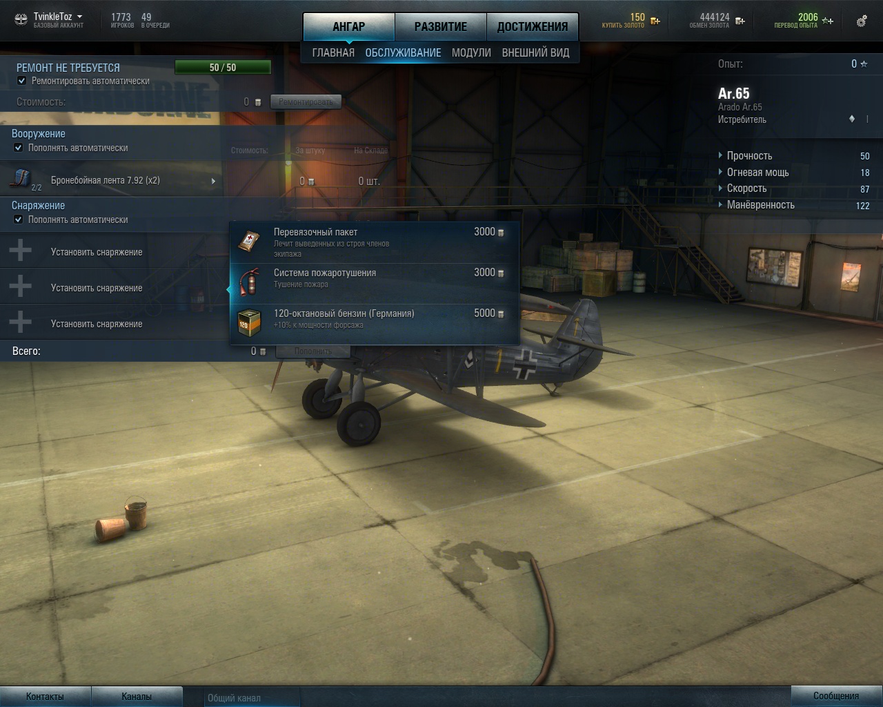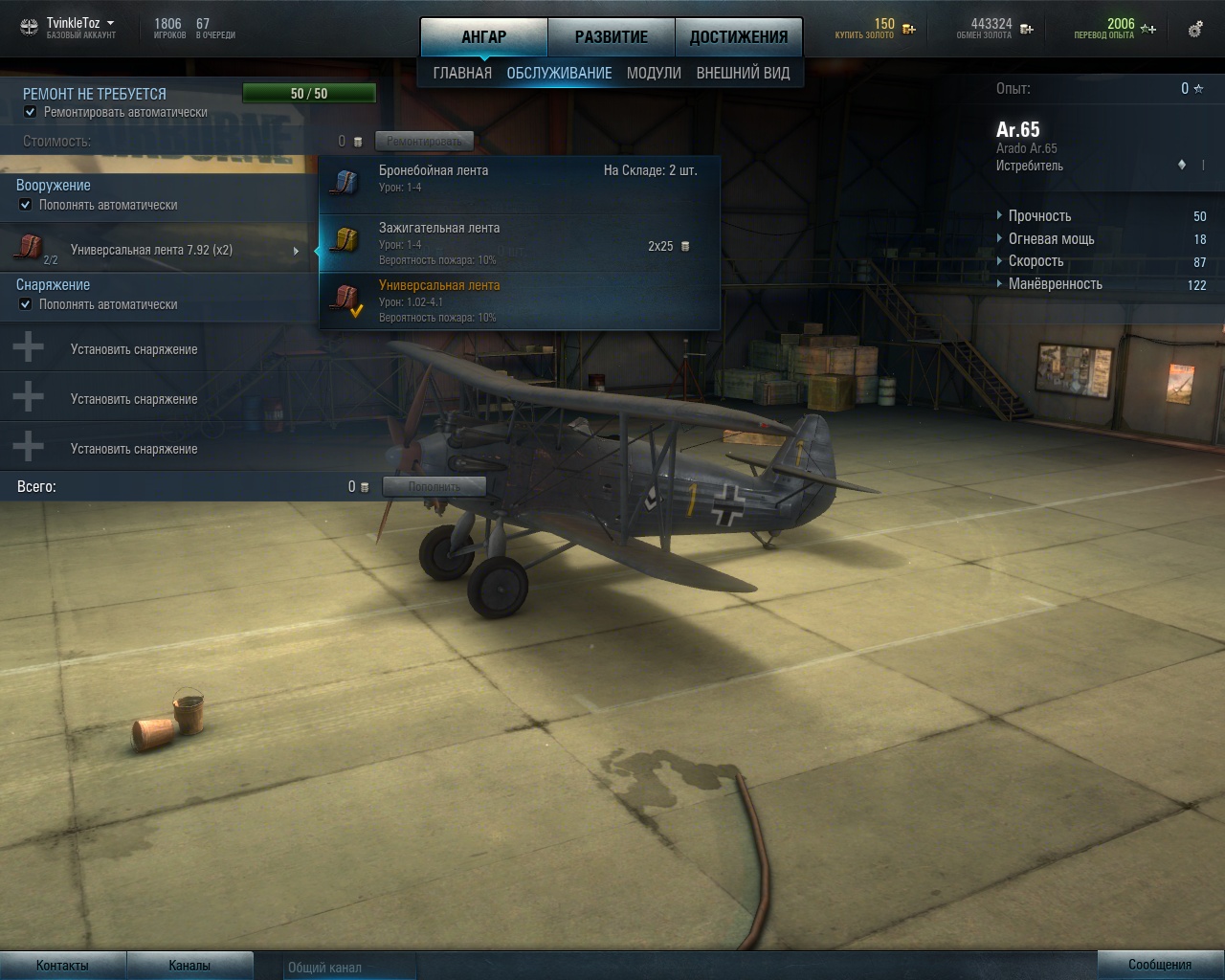 - В ангаре добавлено обслуживание самолётов: боезапас, ремонт, снаряжение и оборудование.