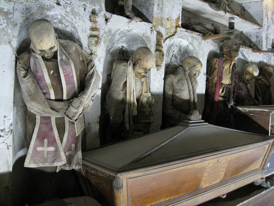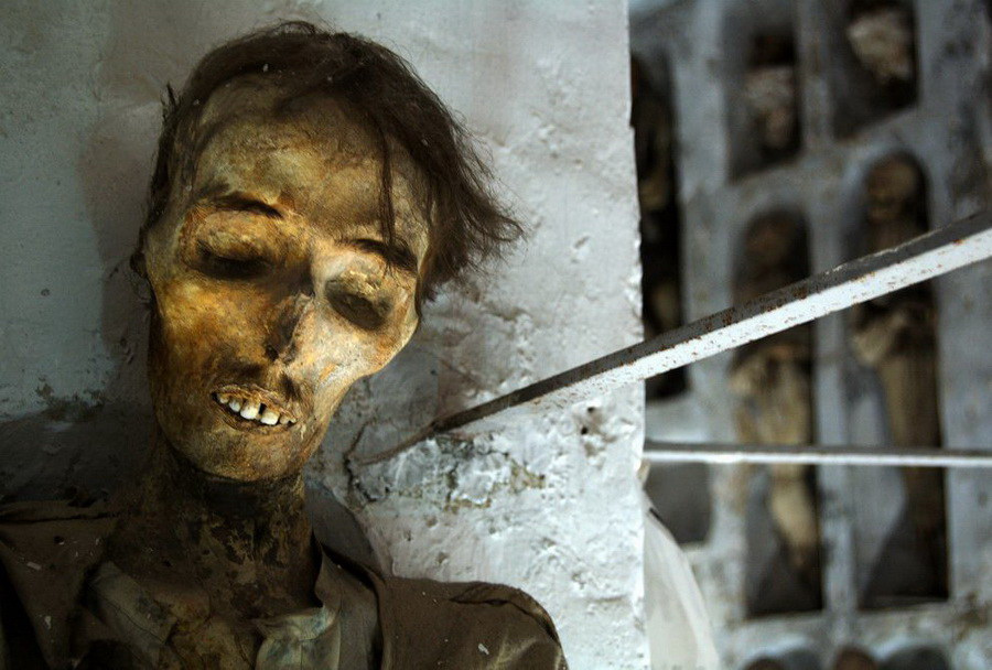 Ночной кошмар нахлынул разрушением. Испуг оцепенил до немоты. Страх отвратительный сковал движения. Так личность постигает раздвоение. О, потрясение! И ты – уже не ты.(с) Добрый вечер читателям GLADpwnz.ru. Я для вас подготовил второй выпуск рубрики "Эстетика отвратительного или даешь искусство в массы" и сегодня мы поговорим о двух интересных, шокирующих, страшных, ужасных, завораживающих, отвратительных достопримечательностях нашей планеты. Сразу предупреждаю уберите от экранов детей и людей с неокрепшей психикой, а то будете потом мочиться под себя ночами и скажете что Тони виноват, если что я предупредил. Итак, начнем-с... Первая достопримечательность, о которой я хочу вам рассказать находится в Бельгии, в маленьком городке Тюрнхаут, с численностью всего 40 000 человек. Здесь 1 октября 1997 года было открыто очень необычное и пугающее заведение, названное рестораном ужасов T'Spookhuys или как его прозвали в народе "Дом тысячи приведений" (House of 1000 ghosts). Заведение впечатляло посетителей жутким интерьером и меню, скрипучими дверями, клубами дыма, опускающимися с потолка, движущимися картинами и другими спецэффектами. Вскоре ресторан приобрел популярность в городе и за его пределами. Любители мистики охотно приходили в заведение, чтобы "поужинать в аду". Некоторые блюда могли потрясти неискушенного посетителя. Например, грязевой пирог с пряными червями, который подавался в человеческом черепе, служащем тарелкой. Официанты были одеты, как вампиры и дьяволопоклонники. Популярность ресторана росла, несмотря на слухи о сатанинских ритуалах, которые проводились в его подвале. Несмотря на это, в 2008 году владельцы ресторана решили закрыть его, вложив средства в новый клуб в городе Зандховен. Причиной закрытия клуба, по словам владельцев, стало большое количество привидений, осложнявших жизнь персонала. К радости туристов, обстановка закрытого ресторана ужасов осталась совершенно нетронутой, позволяя каждому желающему ознакомиться с его необычным дизайном и некоторыми спецэффектами. Вторая достопримечательность, еще более страшная и загадочная, а расположена она в Италии, в главном городе итальянского региона Сицилия - городе Палермо. Катакомбы капуцинов (итал. Catacombe dei Cappuccini) — погребальные катакомбы, в которых в открытом виде покоятся останки более восьми тысяч человек, по большей части местной элиты и выдающихся граждан — духовенства, аристократии и представителей различных профессий. Это одна из самых знаменитых выставок мумий — скелетированные, мумифицированные, забальзамированные тела усопших лежат, стоят, висят, образуют композиции. |
